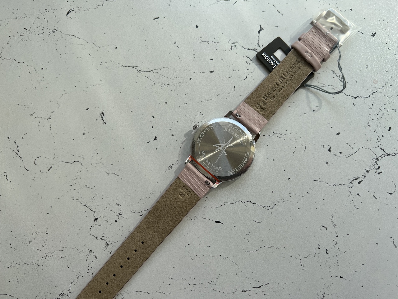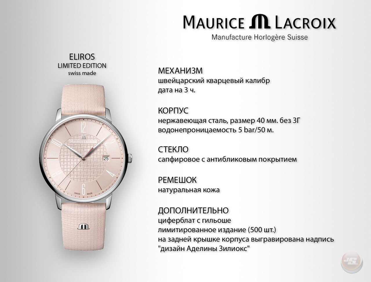 Eliros x Adeline Ziliox отличаются от остальных моделей коллекции составом ремешков и упаковкой. На задней крышке корпуса часов выгравирована надпись «designed by Adeline Ziliox».