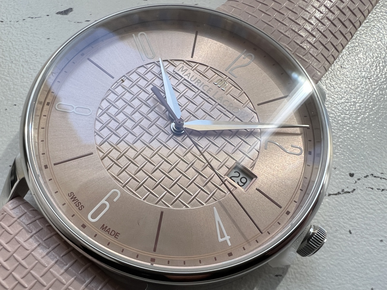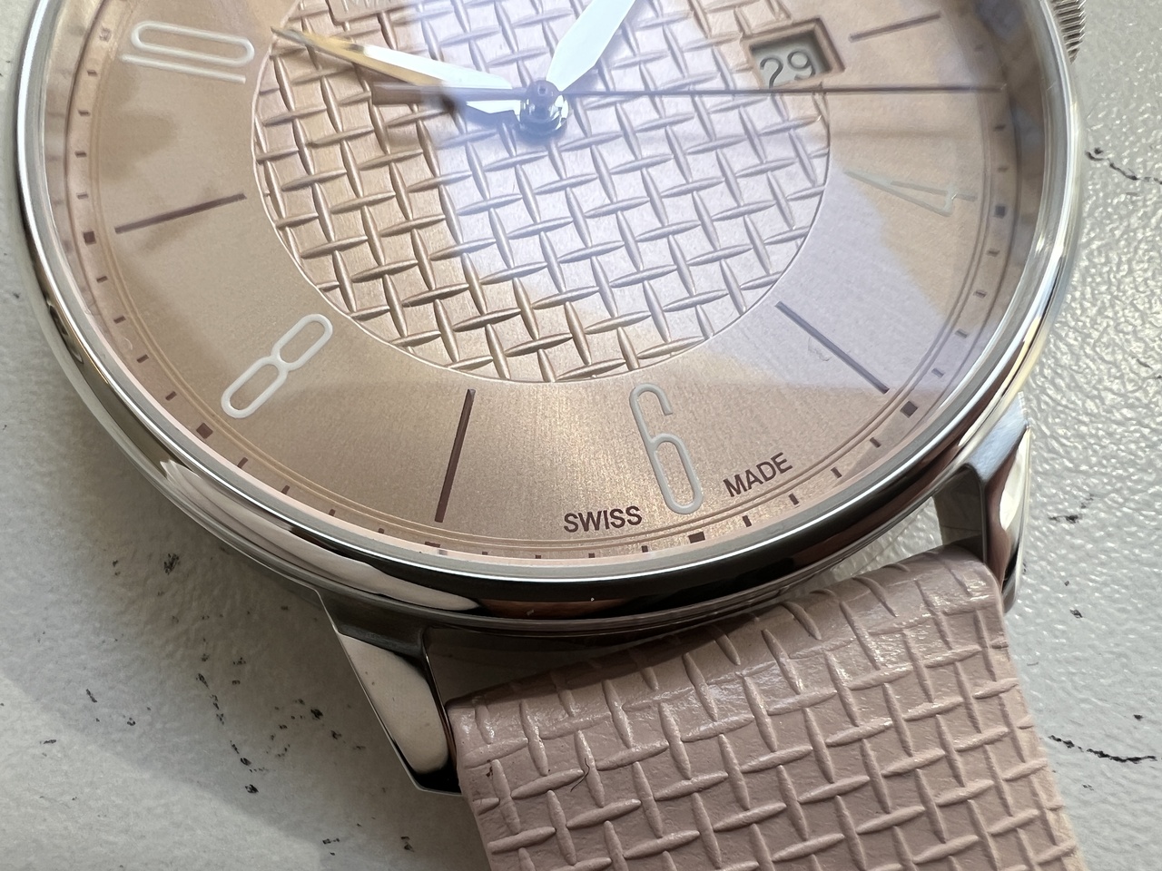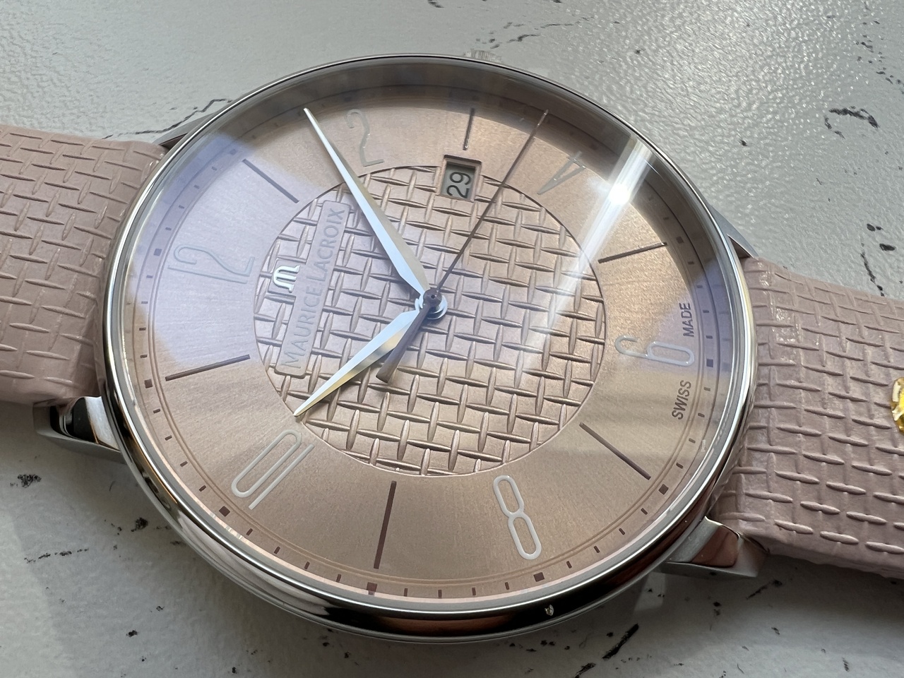 Центральная часть циферблата украшена ажурным розовым мотивом, который продолжается на ремешке. Как и другие модели Eliros, обе версии лимитированной серии оснащены системой быстрой замены.