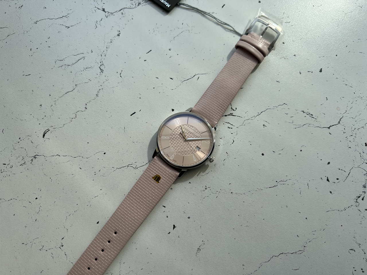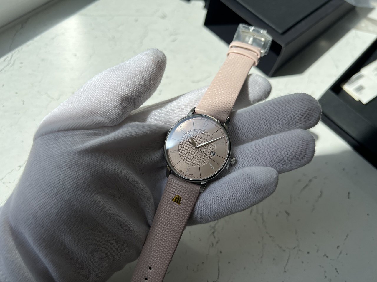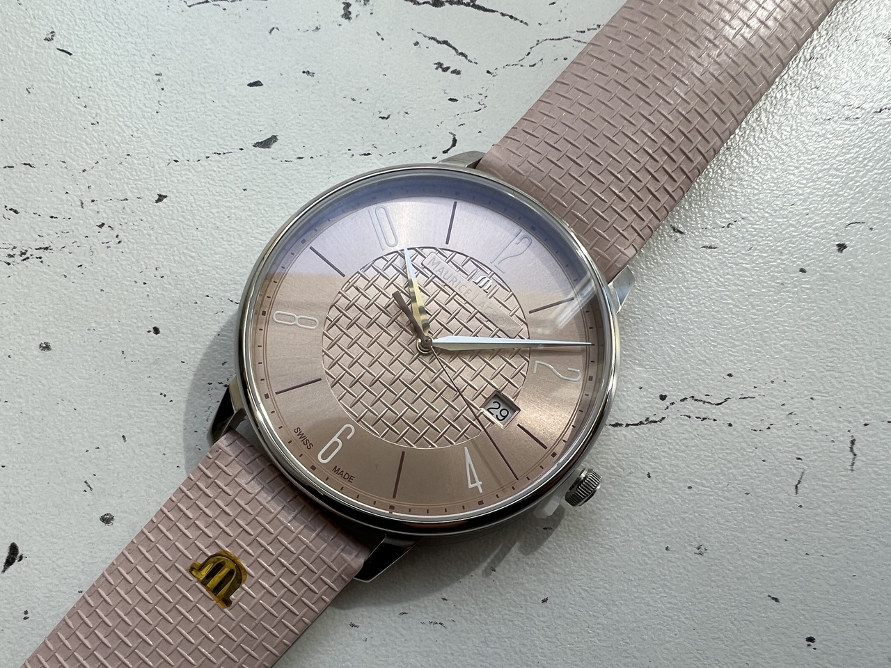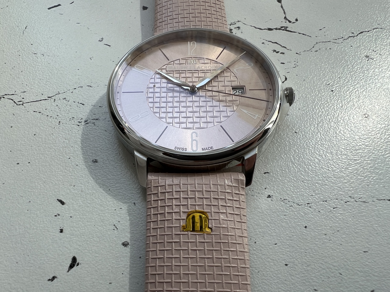 Центральная часть циферблата украшена ажурным розовым мотивом, который продолжается на ремешке. Как и другие модели Eliros, обе версии лимитированной серии оснащены системой быстрой замены.