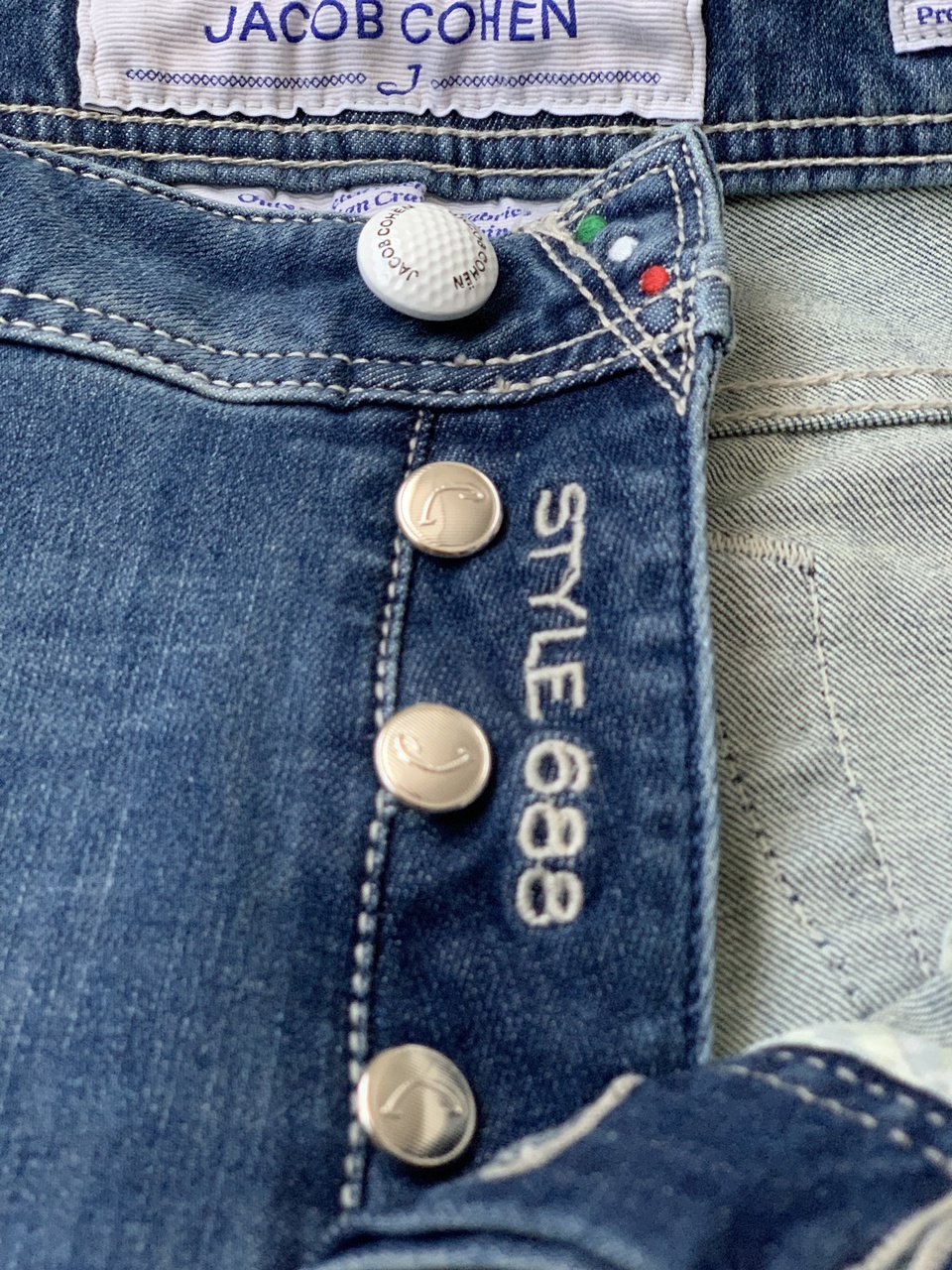 JACOB COHËN новые мужские джинсы J688 светло-синего цвета с потёртостями (33 size)