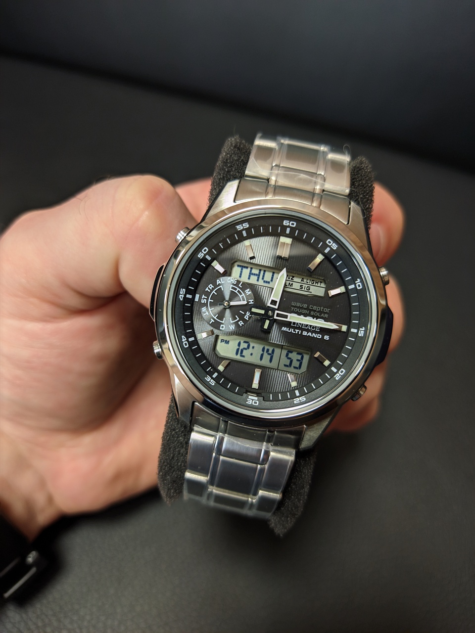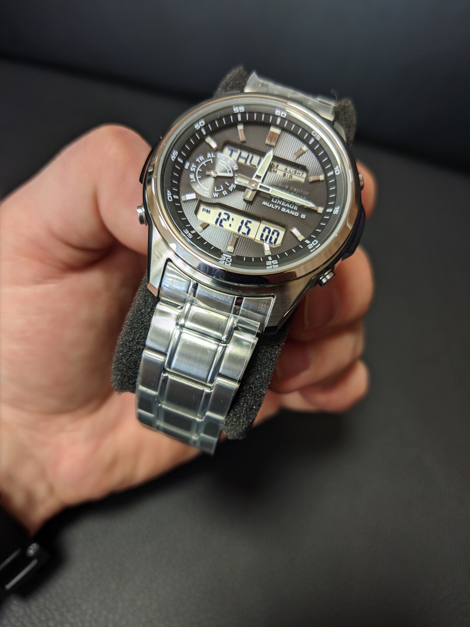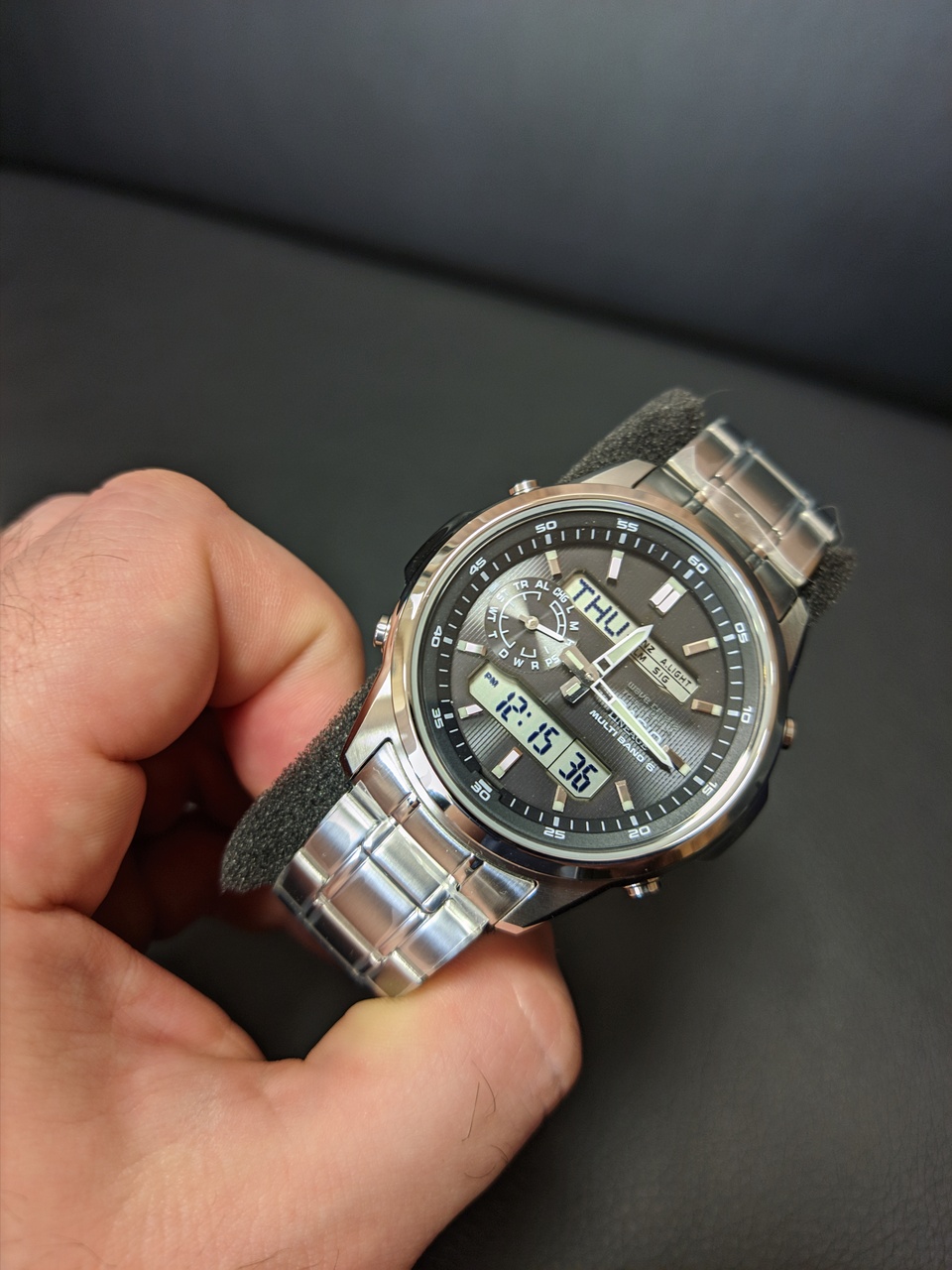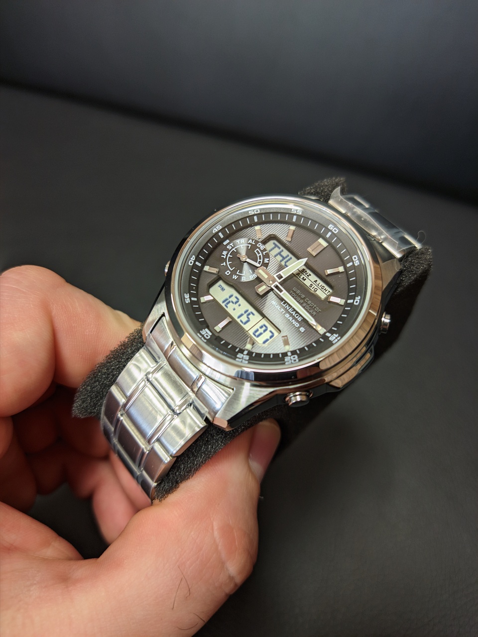 Часы изготовлены полностью из нержавеющей стали, классический японский дизайн, объемный, очень красивый и информативный циферблат с двойной индикацией (цифровая и стрелочная), прекрасная читаемость всех показаний, широчайший функционал, и высокое качество Casio!
