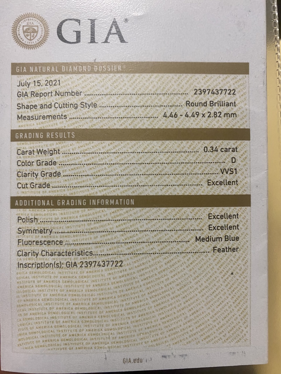 КОЛЬЦО С БРИЛЛИАНТОМ 0,34 карат D/VVS1 (сертификат GIA)!