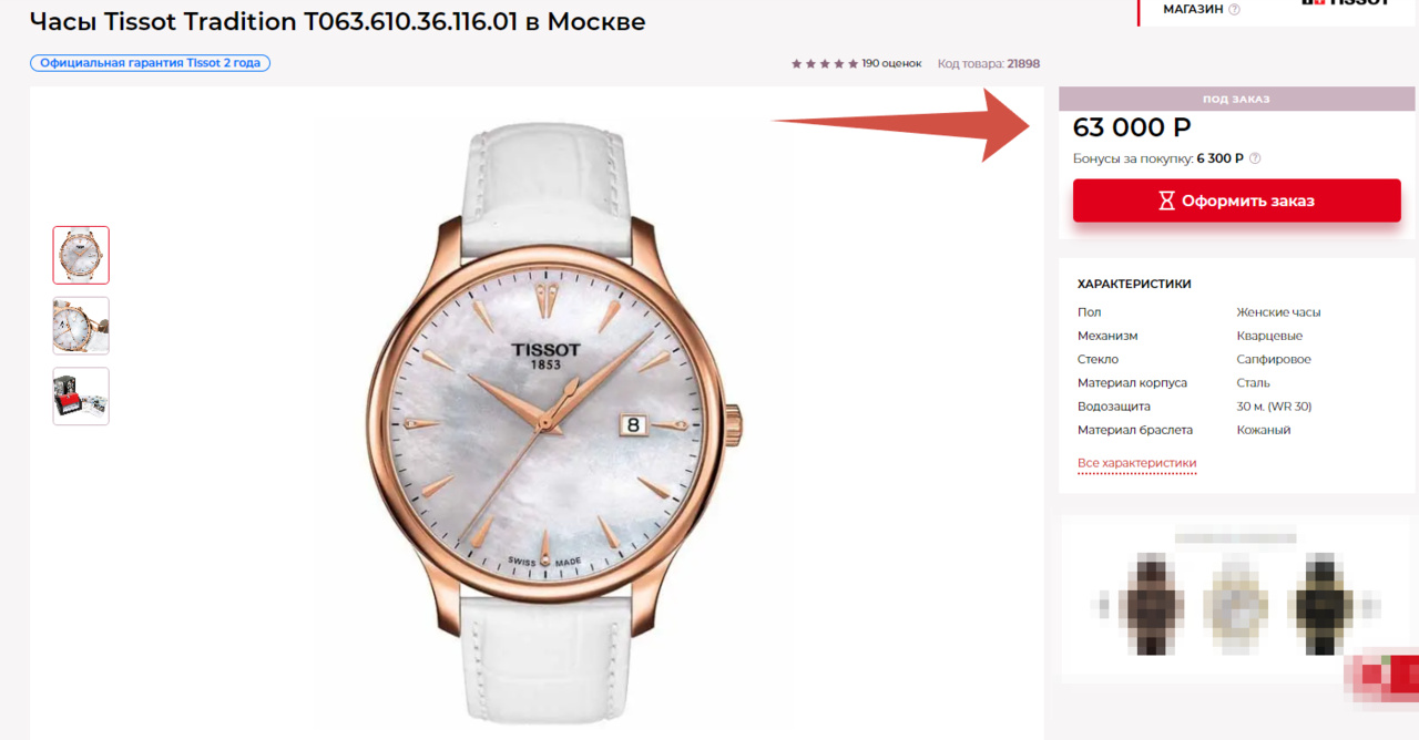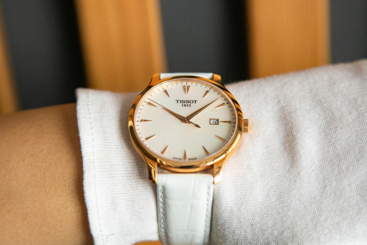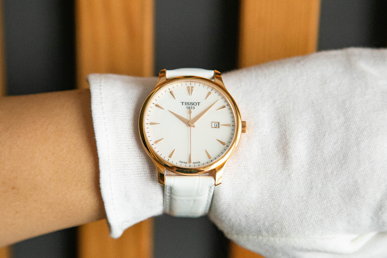 [Женские] TISSOT Tradition PVD T0636103611601. Кварц / Белая кожа / 5 бриллиантов / d=42mm - Часовой форум Watch.ru