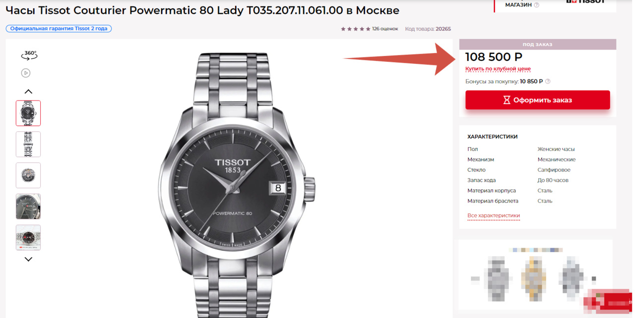 Калибр: Powermatic 80.141 (Запас хода - 80 часов)