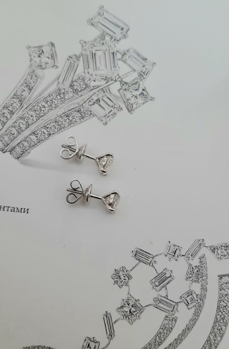 В продаже пуссеты из белого золота 750 пробы с бриллиантами 0,70 и 0,72 карата.