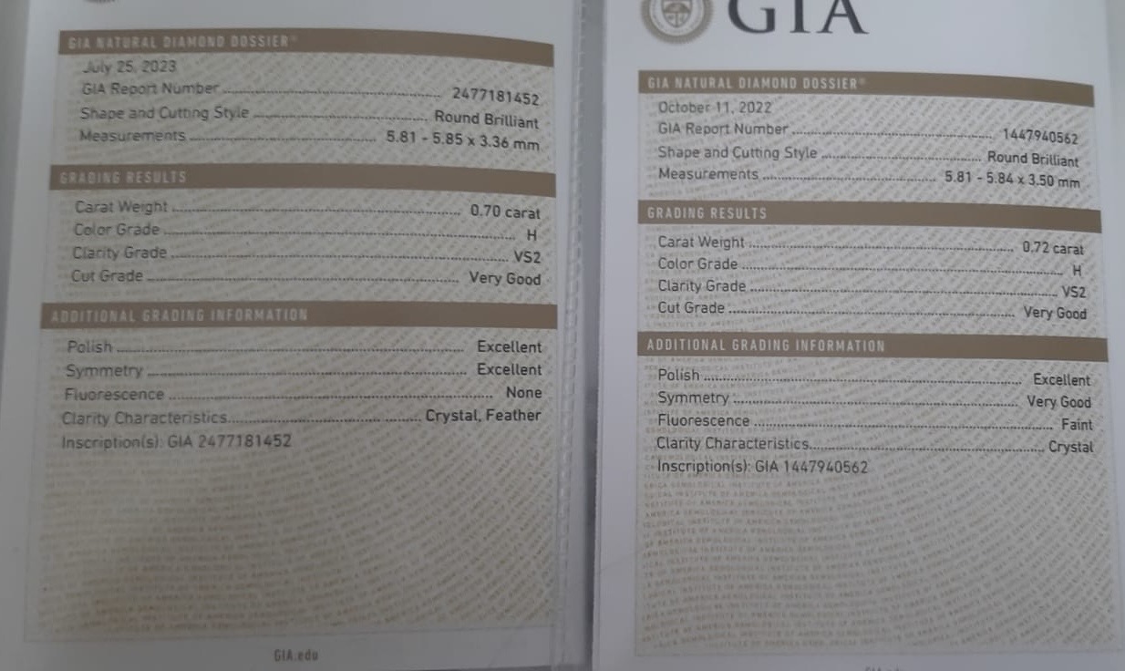 СЕРЬГИ-ПУССЕТЫ С БРИЛЛИАНТАМИ 0,70 и 0,72 карат H/VS2 (сертификаты GIA)!