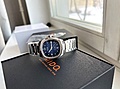 Роскошный форм фактор, правильный диаметр, синий циферблат и большая дата.