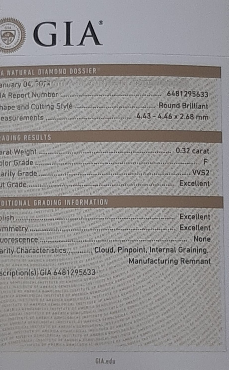 Характеристики бриллианта - F/VVS2! ТОПовый цвет и ТОПовая чистота. Excellent-excellent-excellent! (сертификат GIA).