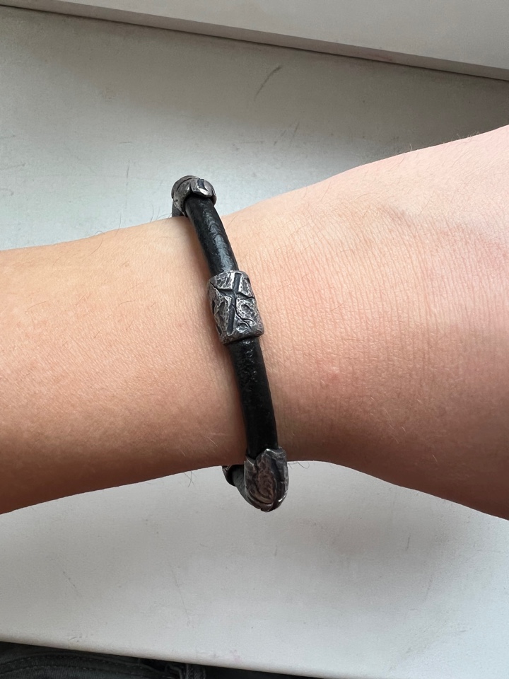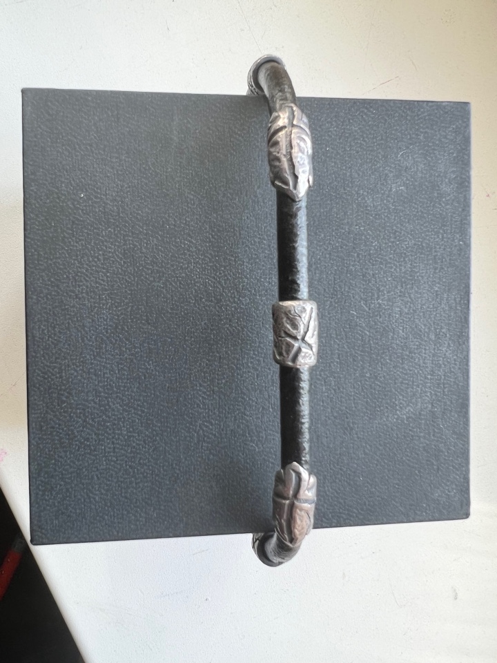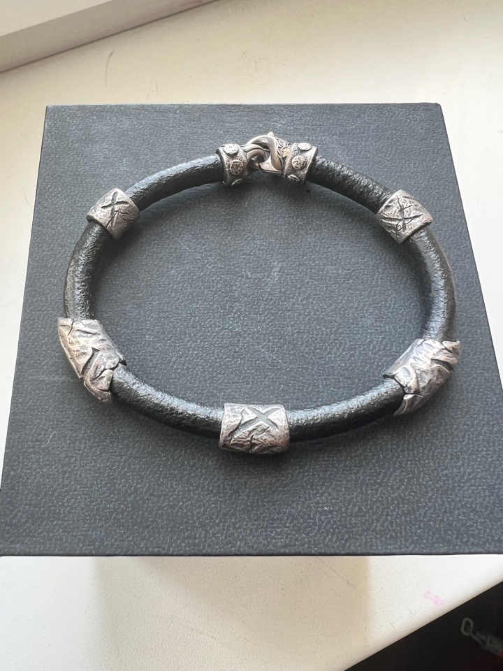 Мужской браслет именитого в недалёком прошлом дизайнера Scott Kay оригинал в хорошем состоянии, размер 21см. Кожа и серебро 925. Ширина кожи - 5 мм, ширина серебряных элементов 7-8 мм. Длина серебряных элементов от 1 до 2 см. Цена - 18 тыс. руб. Продажа в Москве, пересыл по предоплате.