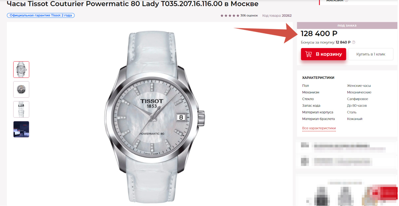 Калибр: Powermatic 80.141 (Запас хода - 80 часов)