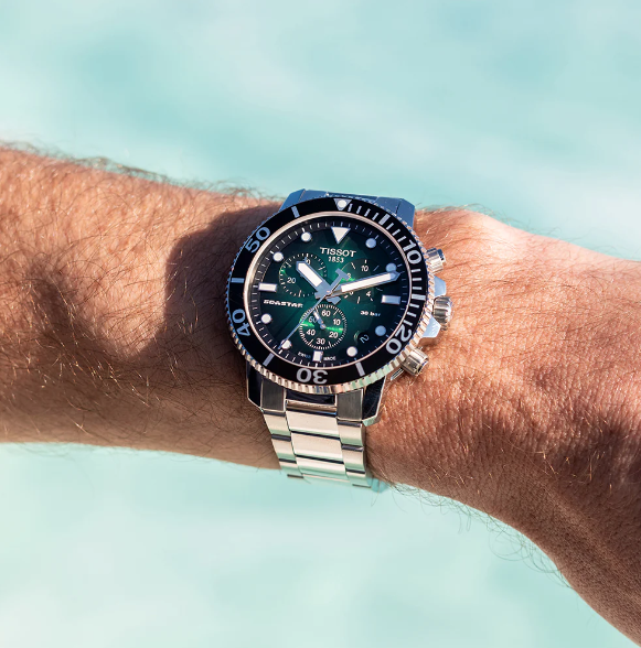TISSOT Seastar Quartz Chrono T1204171109101. Кварцевый хрон / Браслет / Черно-зеленый цифер / d=45mm