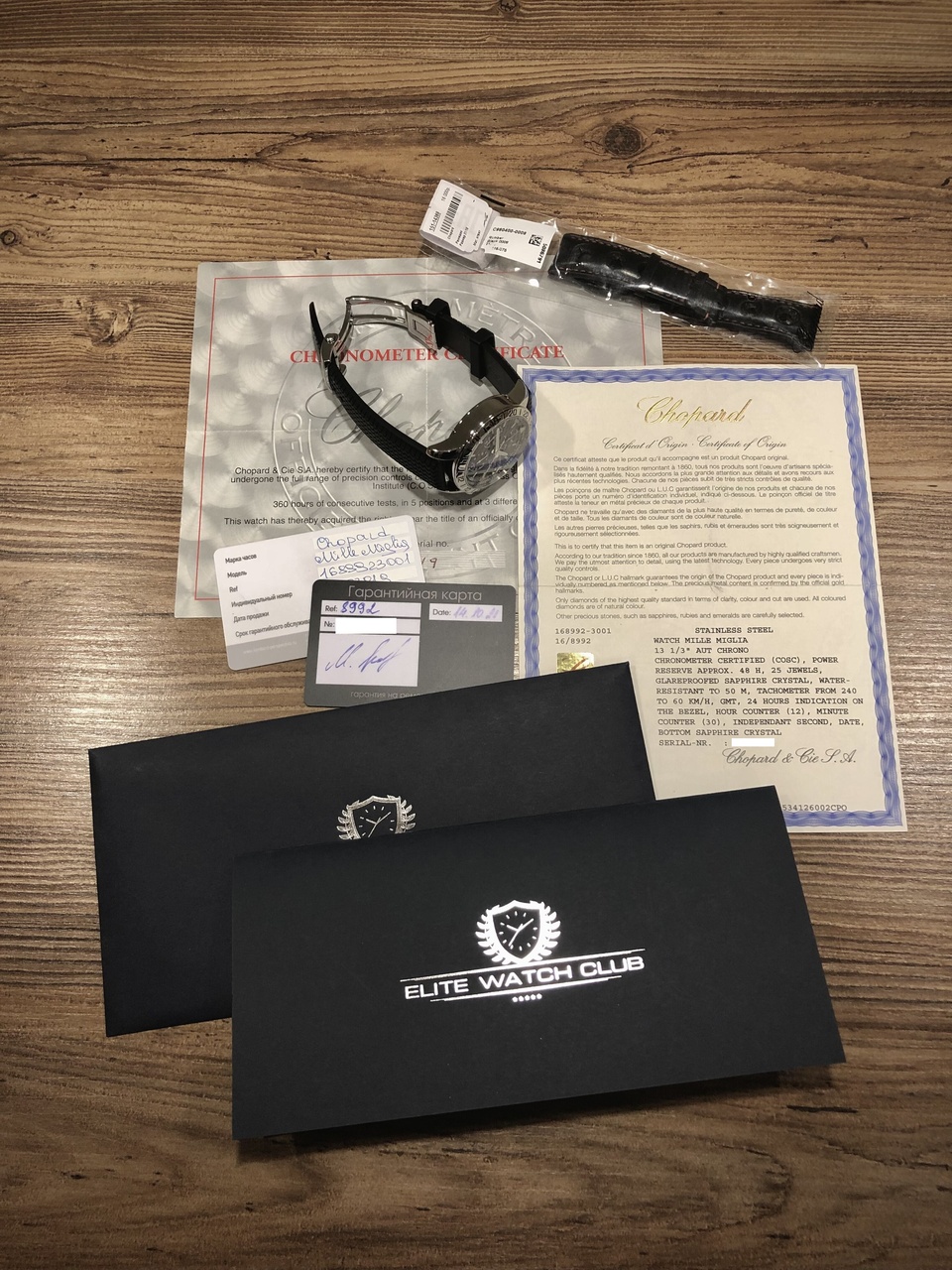 В октябре 2021 год часы прошли сервис в часовой мастерской Elite Watch Club в Санкт-Петербурге. Был произведен репассаж механизма с полной разборкой, профилактической заменой подшипника ротора автоподзавода, реверсивного колеса и полировкой корпуса (бюджет 55 тысяч рублей). После получения часов из сервиса был установлен новый оригинальный ремешок Chopard из каучука приобретенный в Меркури. Оригинальный ремешок из кожи с красной прострочкой прилагается.