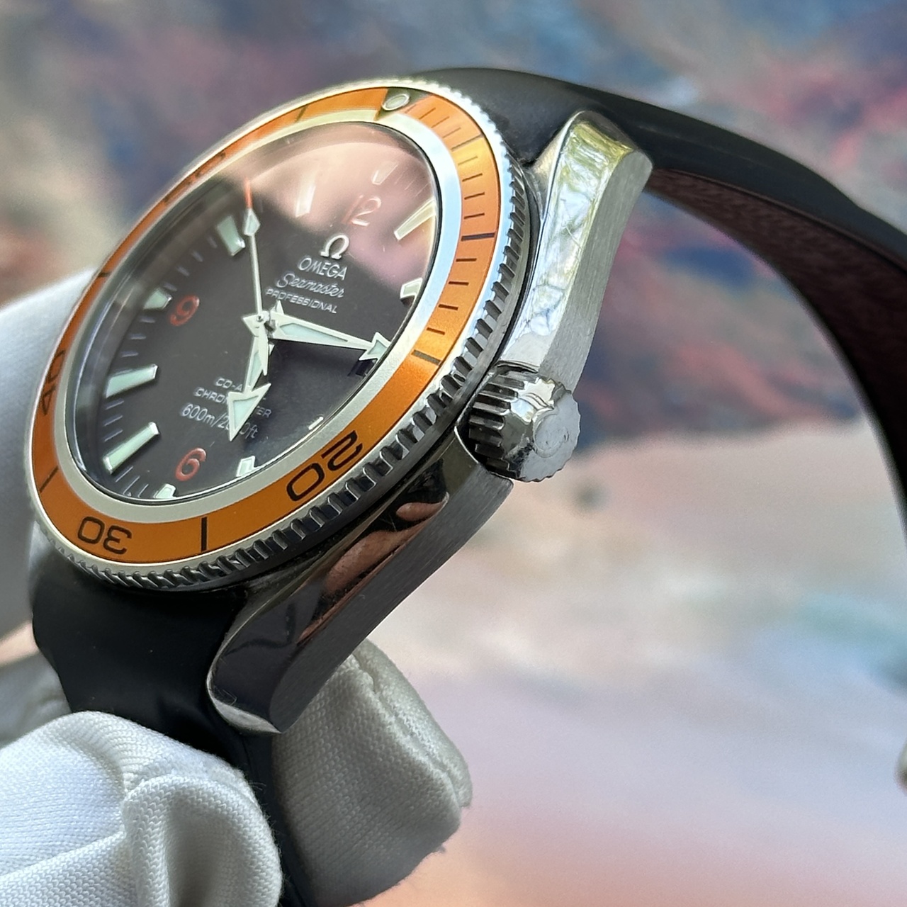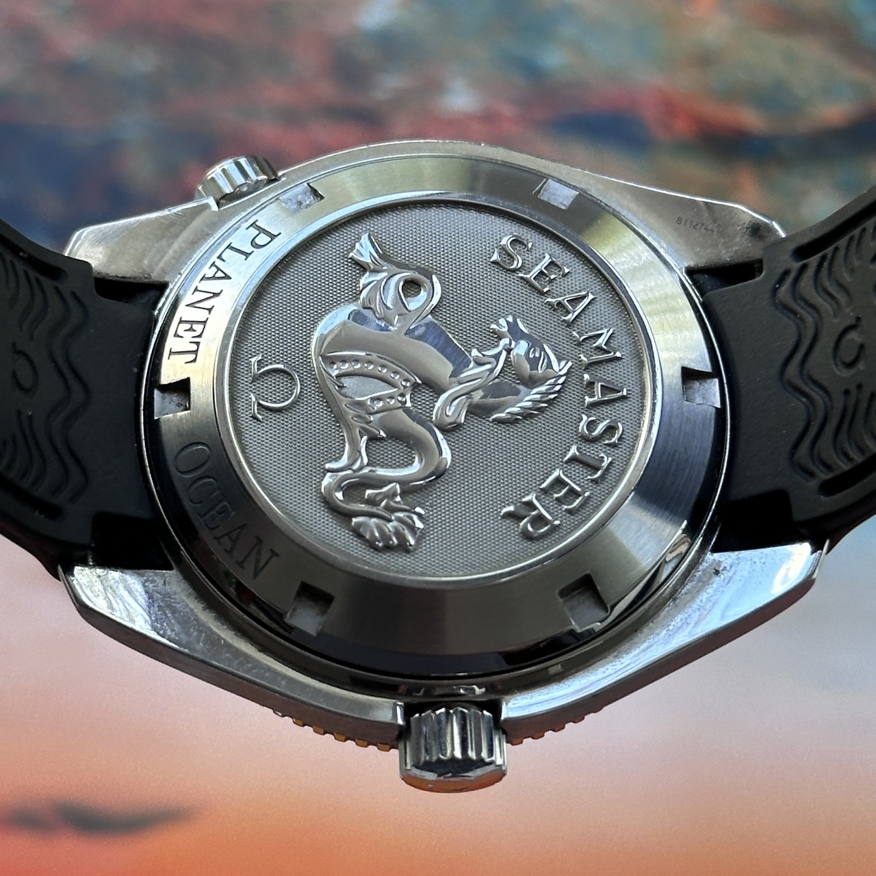 Механизм: калибр Omega 2500, хронометр с автоподзаводом, коаксиальный спусковой механизм с родиевым покрытием. Диаметр корпуса 42 мм. Водозащита 600 метров. Гелиевый клапан для сброса давления после подводного погружения. Вращающийся безель. Ярчайший люм.