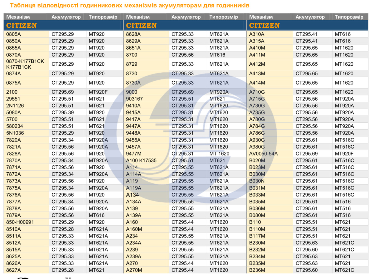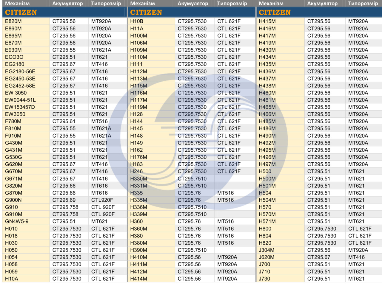 Подбор АКБ Citizen - Часовой форум Watch.ru