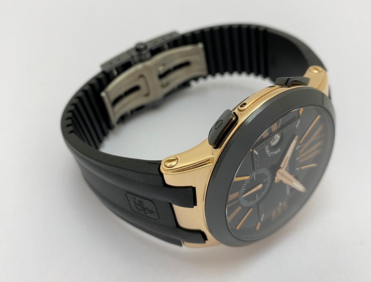 -Черный каучуковый ремень с раскладной застежкой из керамики и титана.