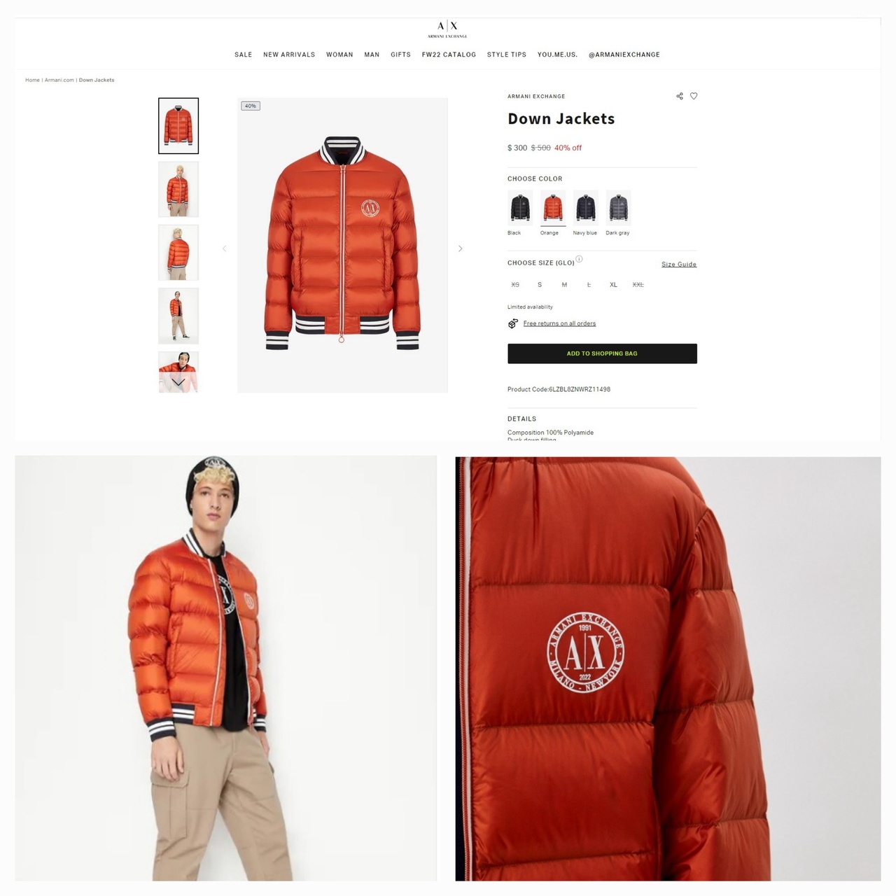 ARMANI EXCHANGE мужской пуховик-бомбер новый,цвет Orange,размер М (рос 48-50)