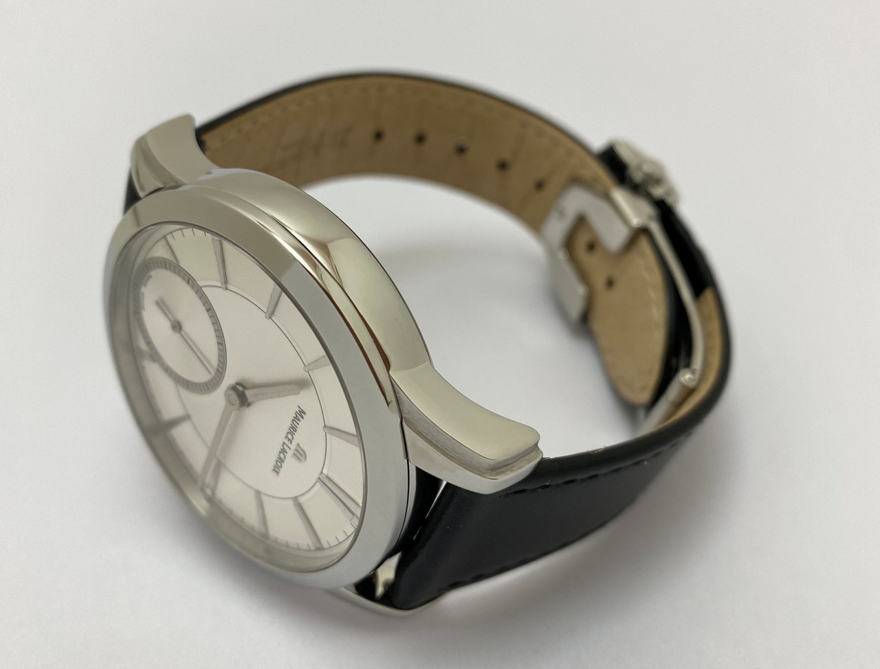 Чaсы в очень хорошем состоянии. Есть царапина на стекле в районе трех часов, на светлом циферблате малозаметна. Проведено обслуживание механизма, установлен новый ремень Hirsch. Без комплекта.