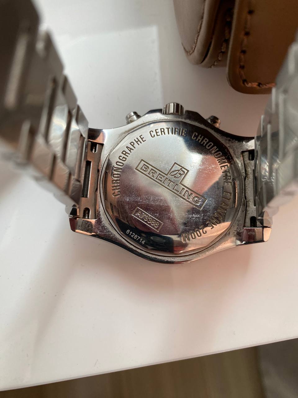 Легендарный кварцевый хронограф от Breitling на "косом" браслете из нержавеющей стали. В комплекте также абсолютно новый черный каучуковый браслет (качественная реплика).