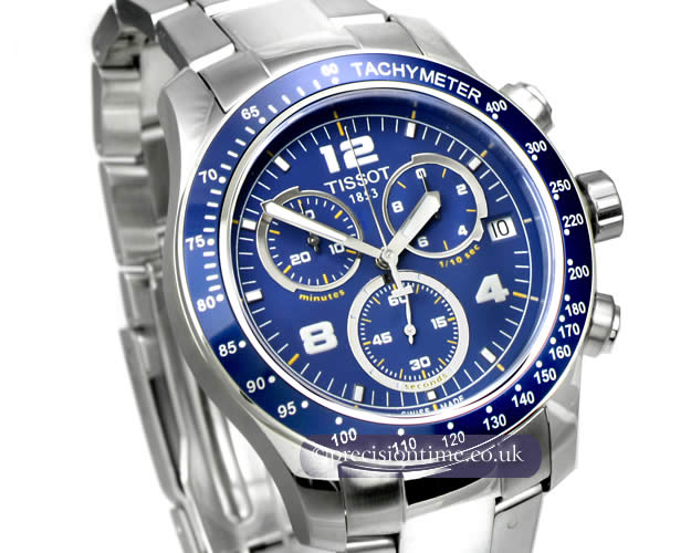 Секундная стрелка смещена на маленький циферблат (в 6 часов). Дополнительные циферблаты хронографа: на 30 минут и 1/10 доли секунд. Секундомер с режимами ADD и SPLIT. Окошко даты.