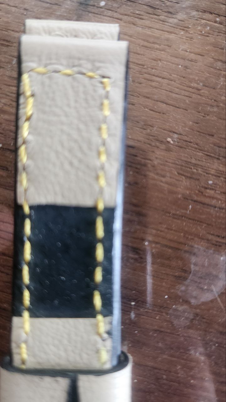 Если голубые нитки вместо белых на синем ремешке это мелочь, если задиры краски можно списать на то, что делать ремешок Артём попросил малолетнего сына, в результате чего вся краска в огромных задирах, то чем объяснить выбор молочного цвета вместо оливково-защитного, я не могу понять.