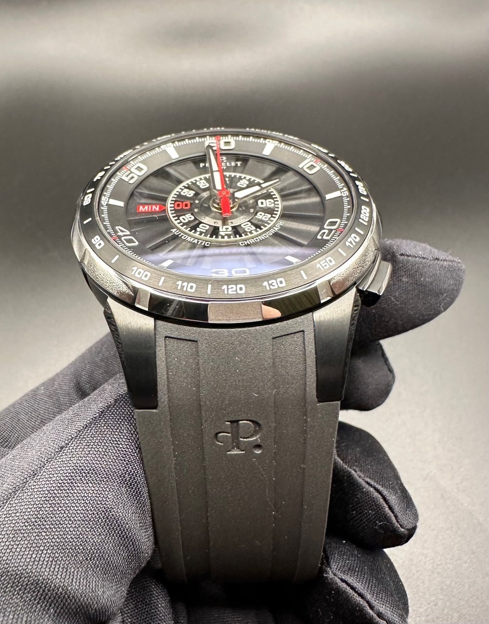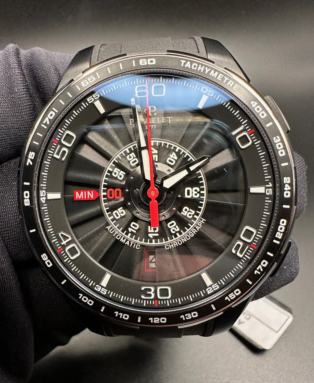 Модель оснащена швейцарским автоматическим механизмом Perrelet P-361, с двойным ротором, функциями индикации часов, минут, даты, а также с функцией хронографа (центральная секундная стрелка красного цвета и 60-минутный счетчик, выполненный в виде двух, наложенных друг на друга, центральных круглых градуированных сапфировых стекол с красным указателем, расположенным на 9 часах). Поставляется на черном каучуковом ремешке.