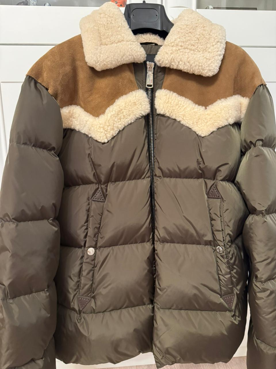 Воротник натуральная овчина, плечи замша, ткань полиамид, наполнитель - утиный пух.