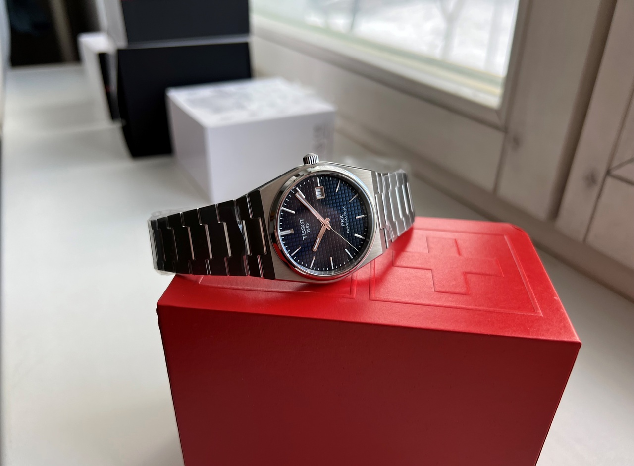 PRX Powermatic 80 c синим, рифленым циферблатом.