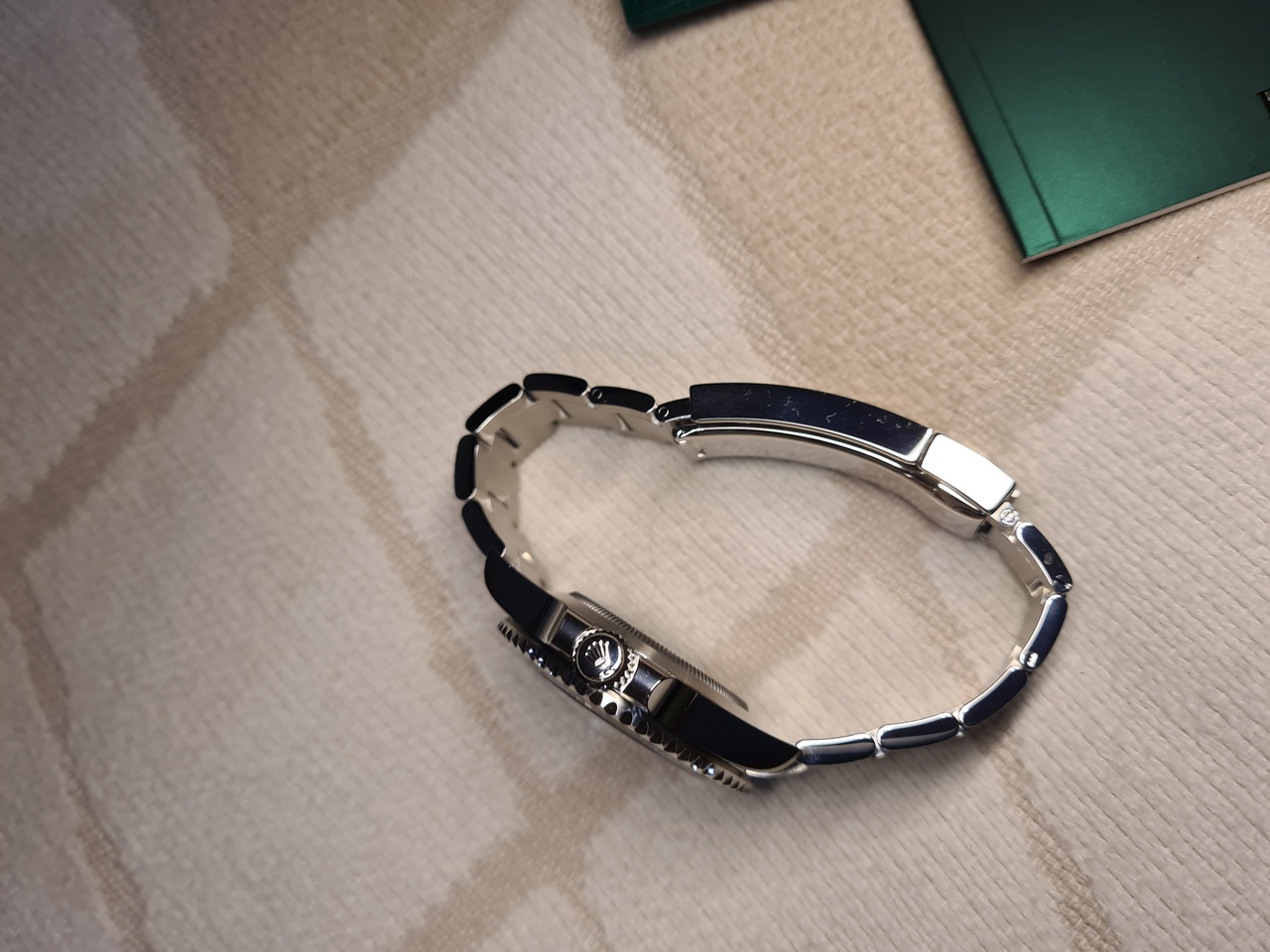 выставляю на продажу свои часы Rolex Submariner (No Date) ref. 124060, которые купил в сентябре 2024 года в бутике Rolex и надевал на руку лишь только в момент покупки и уже дома в качестве пробы, чтобы попытаться сначала привыкнуть к ним. Когда покупал эти часы, предполагал, что перейду на них со своих Datejust, которые ношу уже несколько лет, практически не снимая и уже не ощущая их на руке, но к сожалению, так и не получилось мне привыкнуть к новым часам. К тому же считаю, что часы должны носиться, а не лежать в коробке.