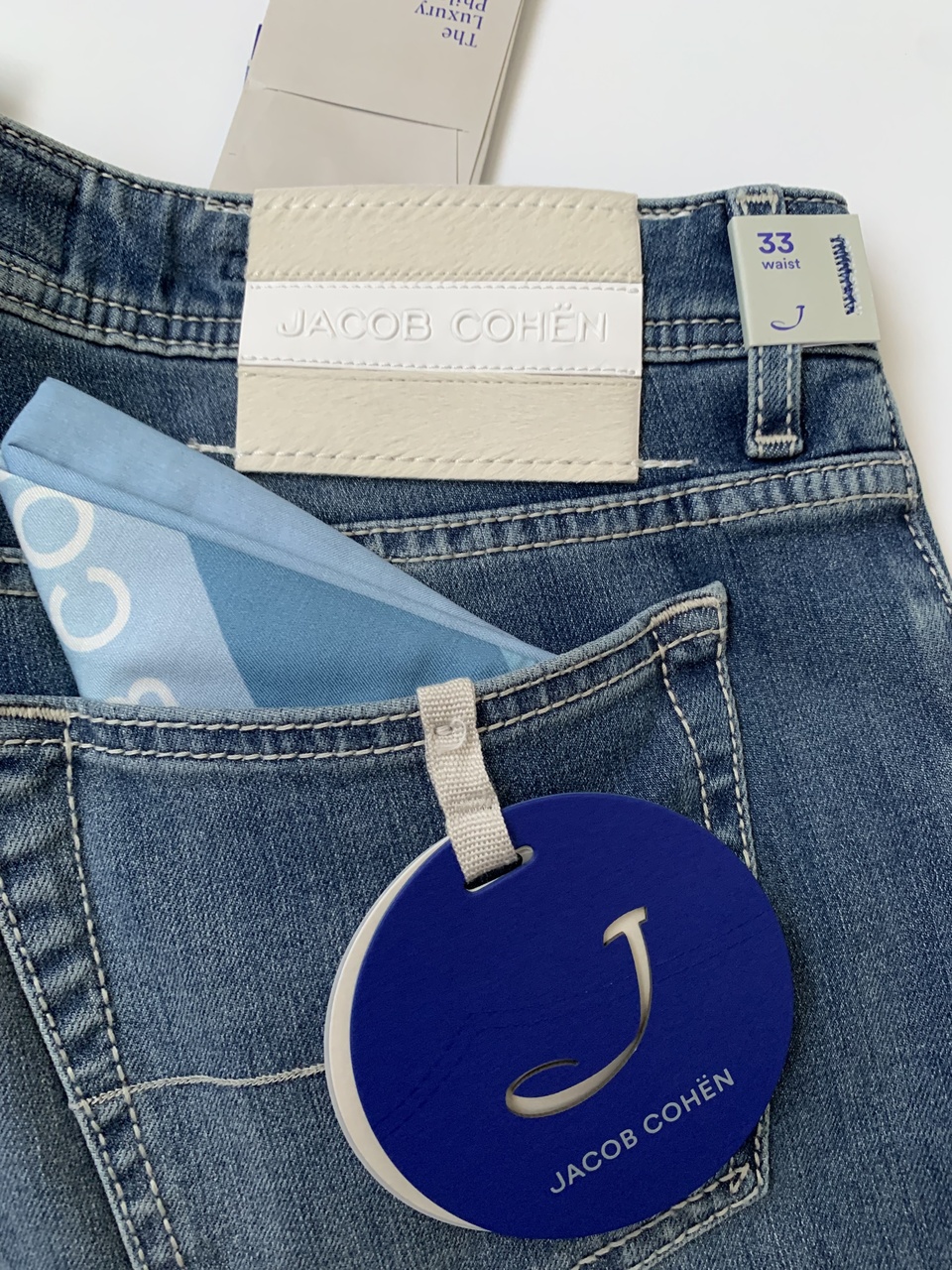 JACOB COHËN новые мужские джинсы J688 светло-синего цвета с потёртостями (33 size)