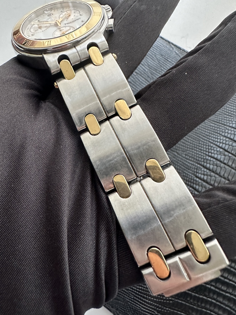 Винтажные часы класса«люкс»от французского ювелирного дома. В этом корпусе-большая редкость. Помимо этого-просто очень красивые часы,пронизанные духом морских путешествий! Золотой безель, толстое сапфировое стекло с внутренней линзой (как у Ulysse nardin), циферблат с золотыми стрелками и люмом .Никакой позолоты-все что выглядит золотом-им и является(цельная пластина на безеле и накатка на браслете и заводной головке).