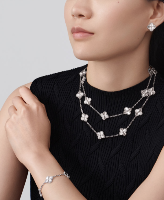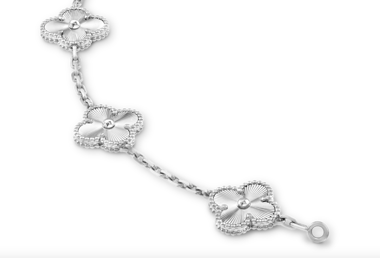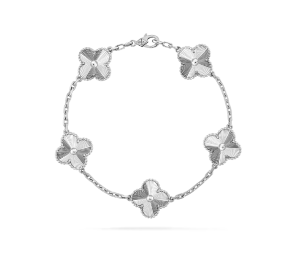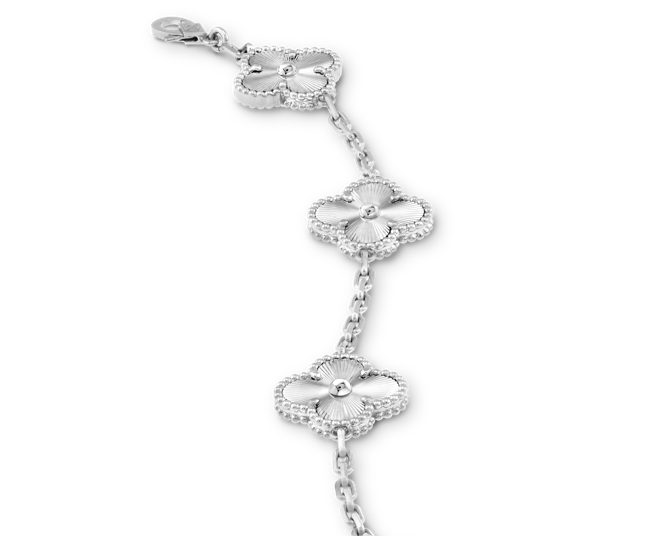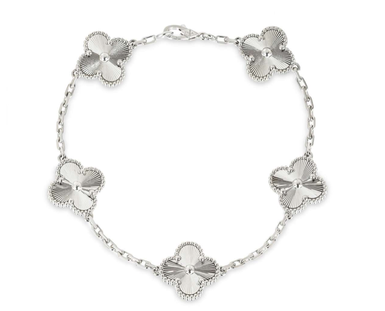 БРАСЛЕТ *VAN CLEEF & ARPELS* VINTAGE ALHAMBRA 5 МОТИВОВ VCARP9XE00/БЕЛОЕ ЗОЛОТО 18 КАРАТ В ТЕХНИКЕ ГИЛЬОШЕ С РОДИЕВЫМ ПОКРЫТИЕМ