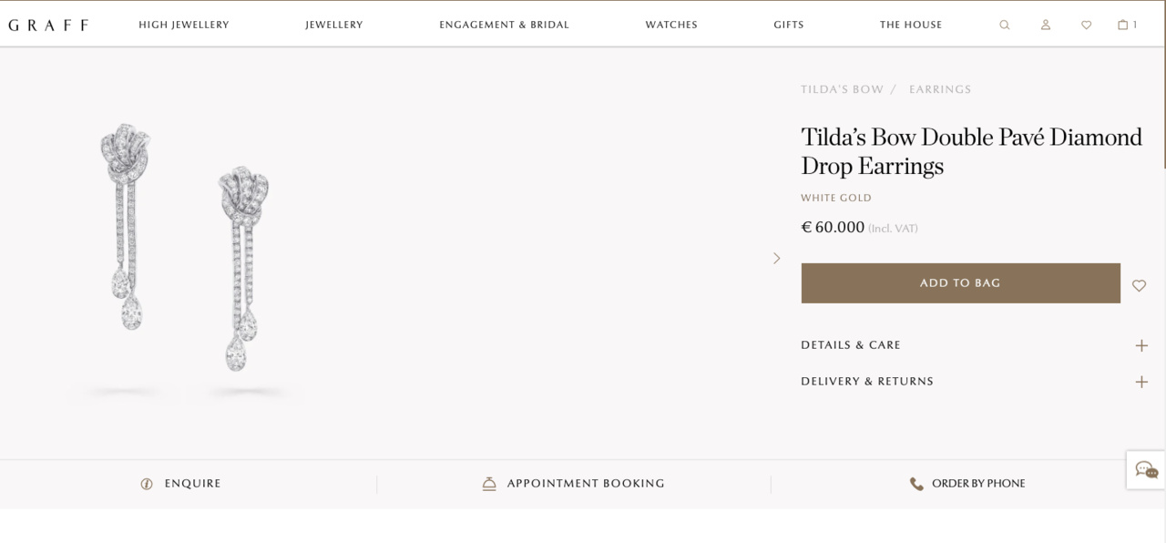 ШИКАРНЫЕ СЕРЬГИ *GRAFF* TILDA’S BOW DOUBLE PAVÉ DIAMOND DROP EARRINGS RGE1400 БЕЛОЕ ЗОЛОТО 750/БРИЛЛИАНТЫ 3,75 КАРАТ