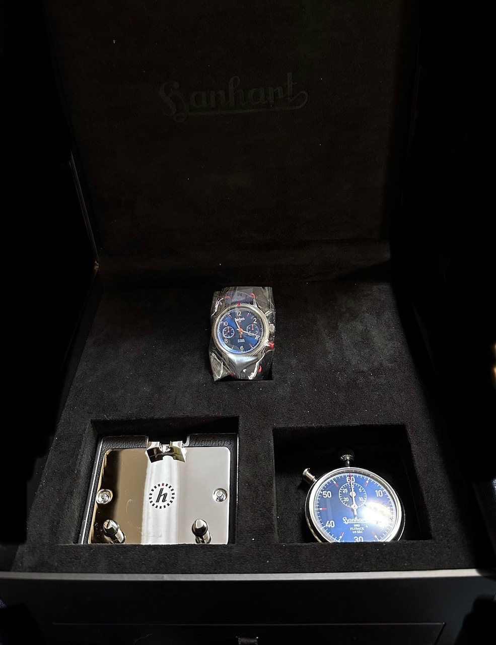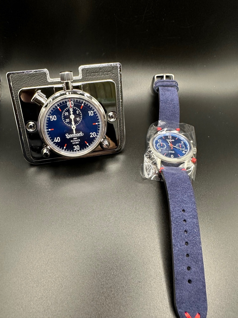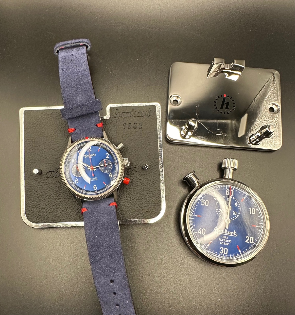 Продаются необычайно красивые и редкие часы в комплекте с секундомером от немецкого производителя пилотских хронографов Hanhart Chronographen 1882, который уже 140 лет производит часы и секундомеры.