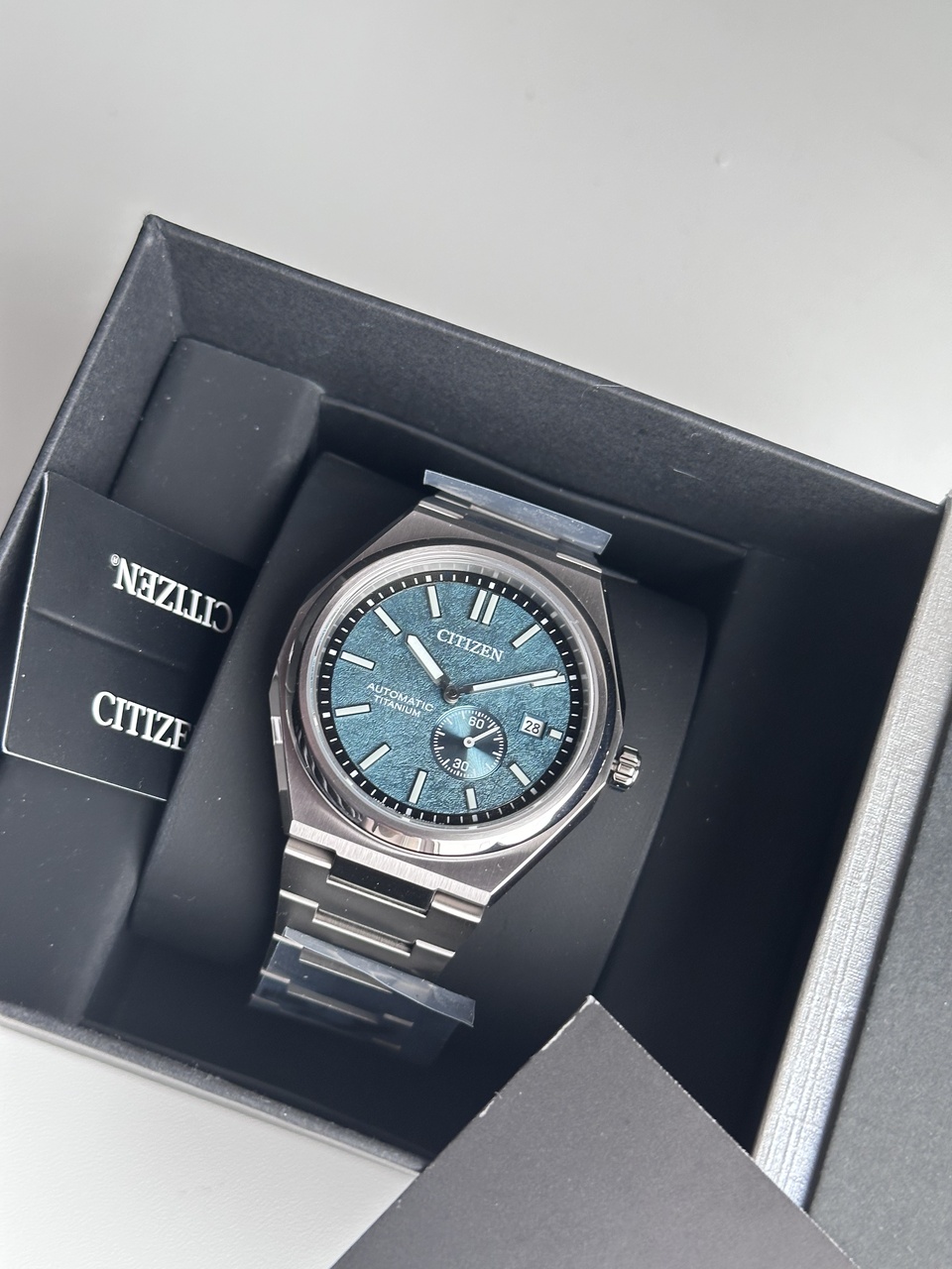 ЗЕЛЁНЫЕ CITIZEN ZENSHIN NJ0180-80X. SUPER TITANIUM. SMALL SECOND. НОВИНКА 2024! АВТОПОДЗАВОД. МАЛАЯ СЕКУНДНАЯ СТРЕЛКА. ТИТАН. САПФИР. ИНТЕГРИРОВАННЫЙ БРАСЛЕТ.