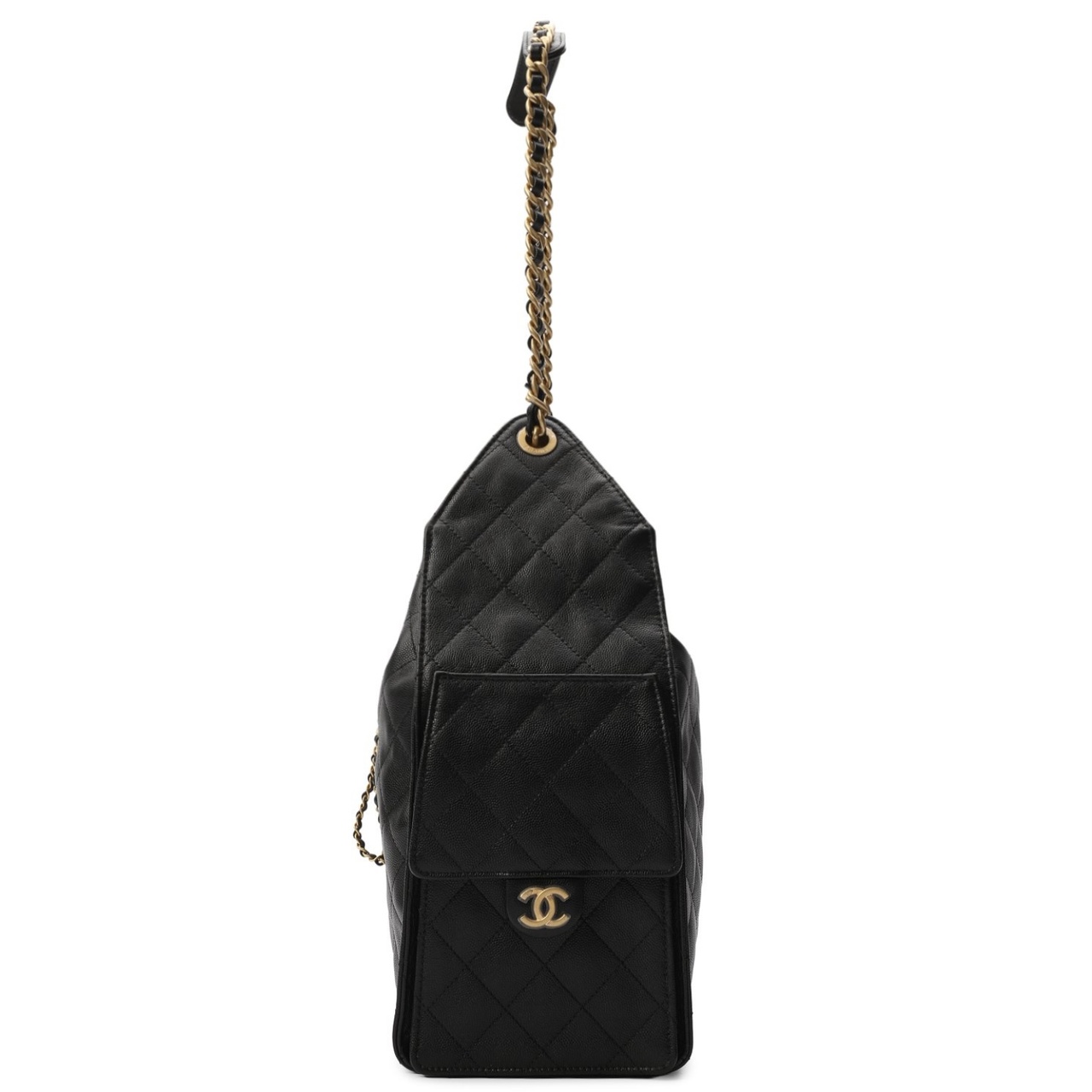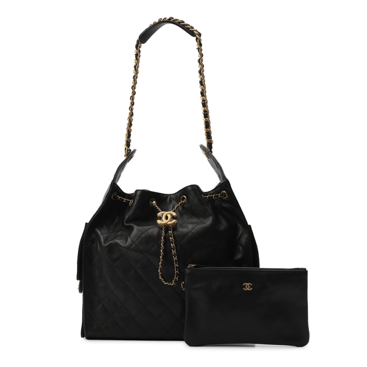 Chanel 25 Medium. Черная кожа. Клатч-pochette в комплекте.