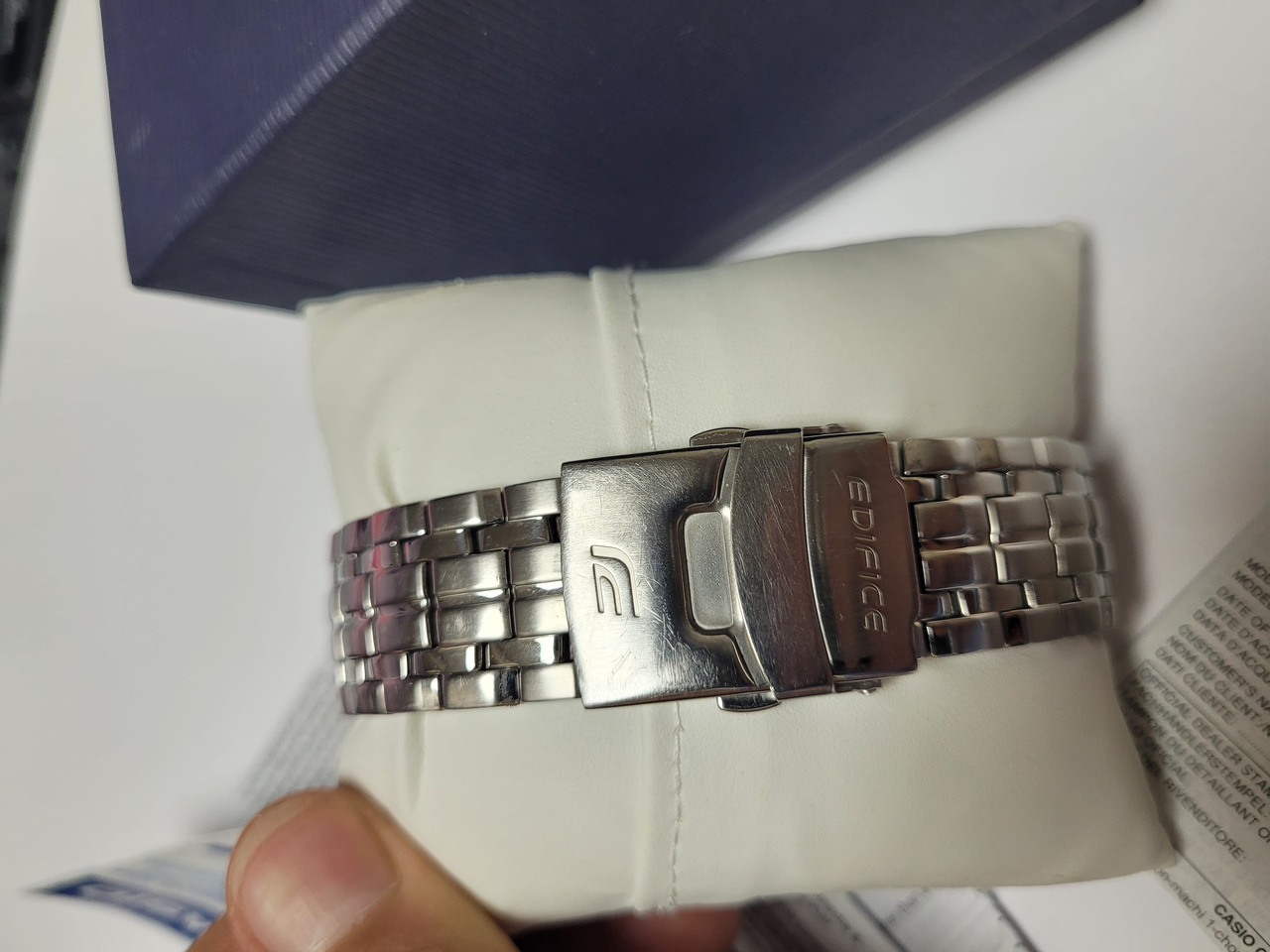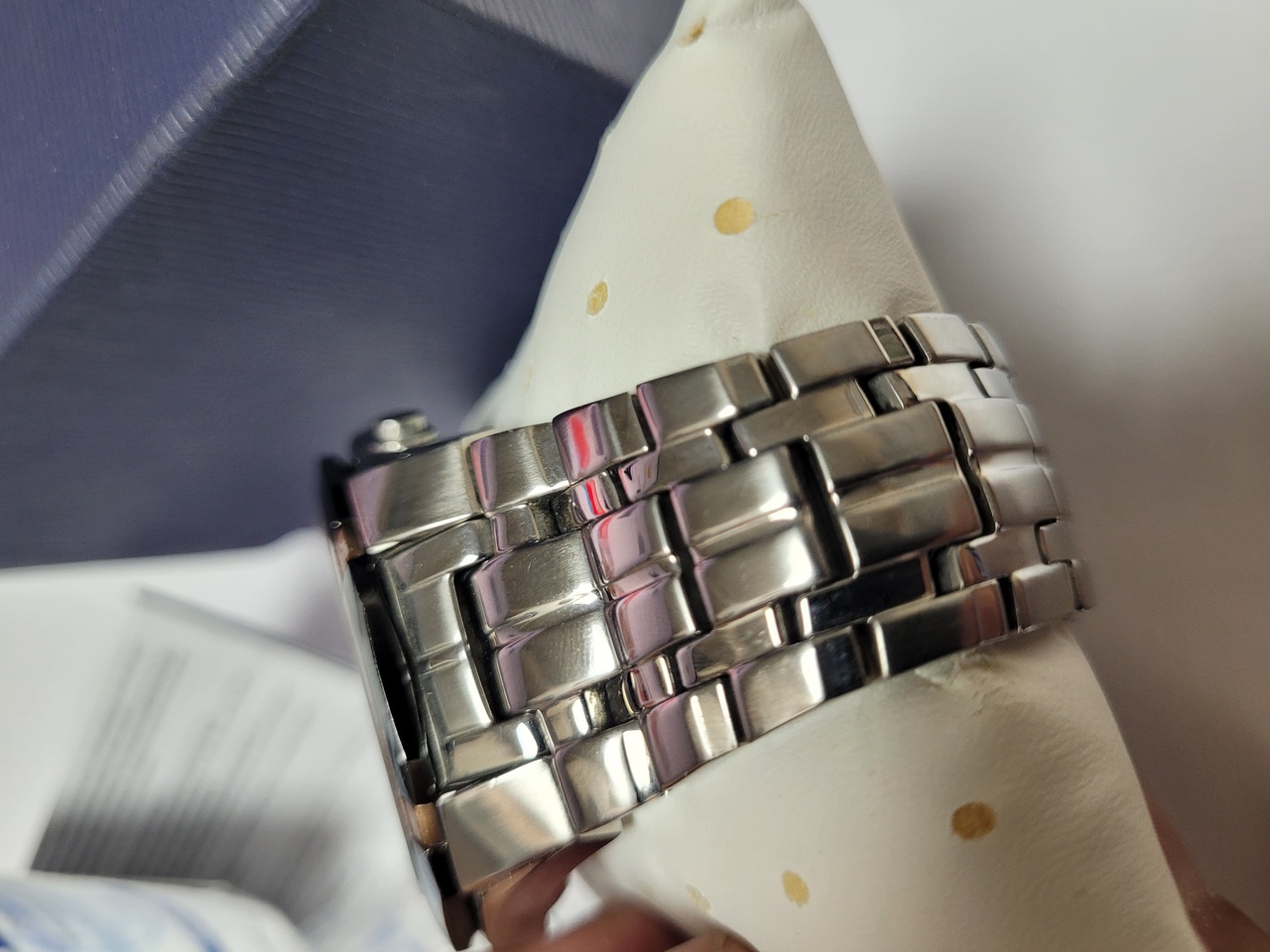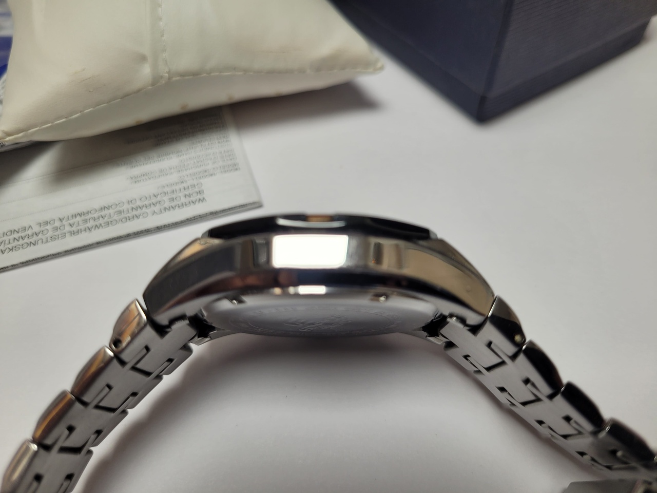 Состояние указал хорошее из за микроскола в районе 10 часов (на фото попытался отразить его), в реальной жизни его практически не видно. Браслет не затертый, носил их мало. Два снятых звена в комплекте, как и все бумажки которые были при покупке.