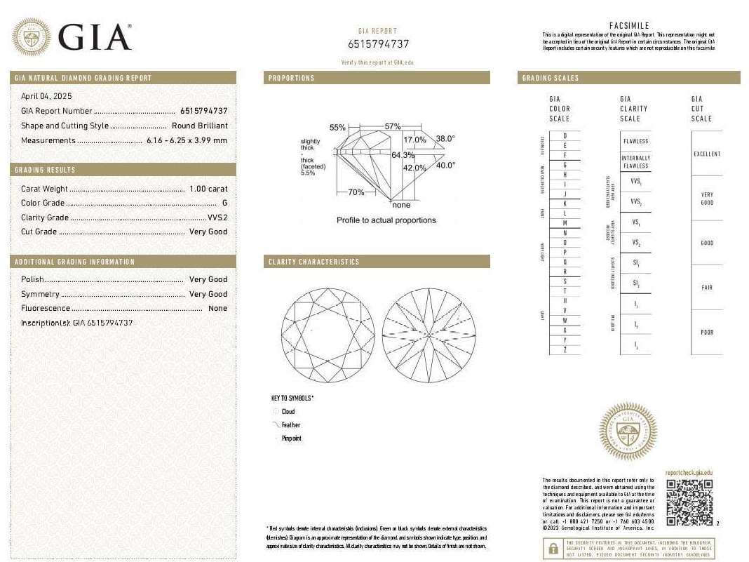 ПУСЕТЫ 2х 1.00 КАРАТ G/VVS2 СЕРТИФИКАТ GIA