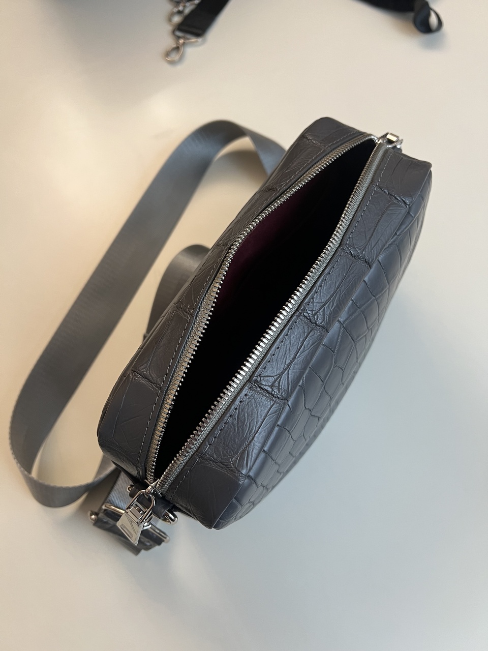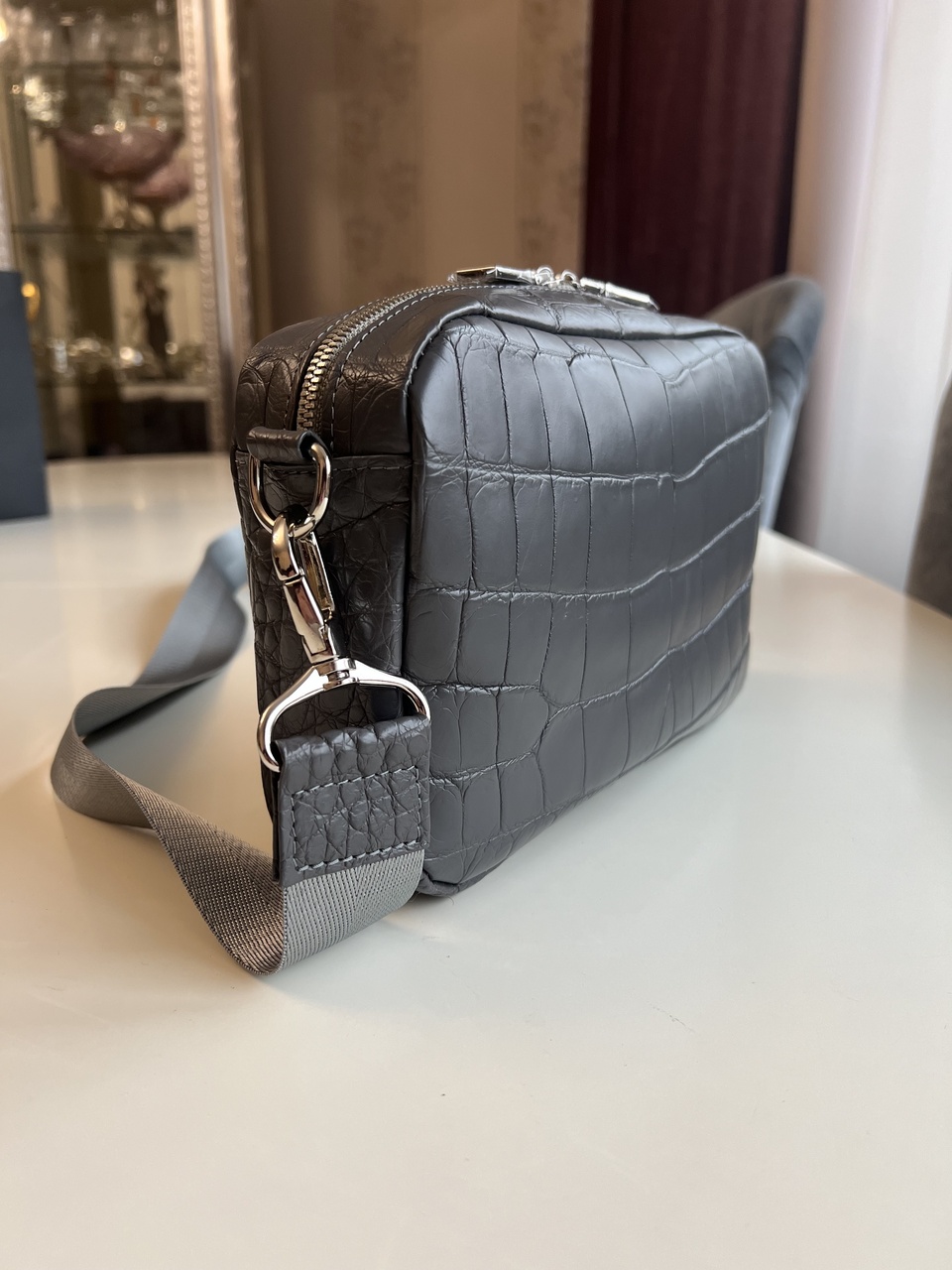 Сумка через плечо из серого (темная сталь) матового крокодила. Цвет роскошный.