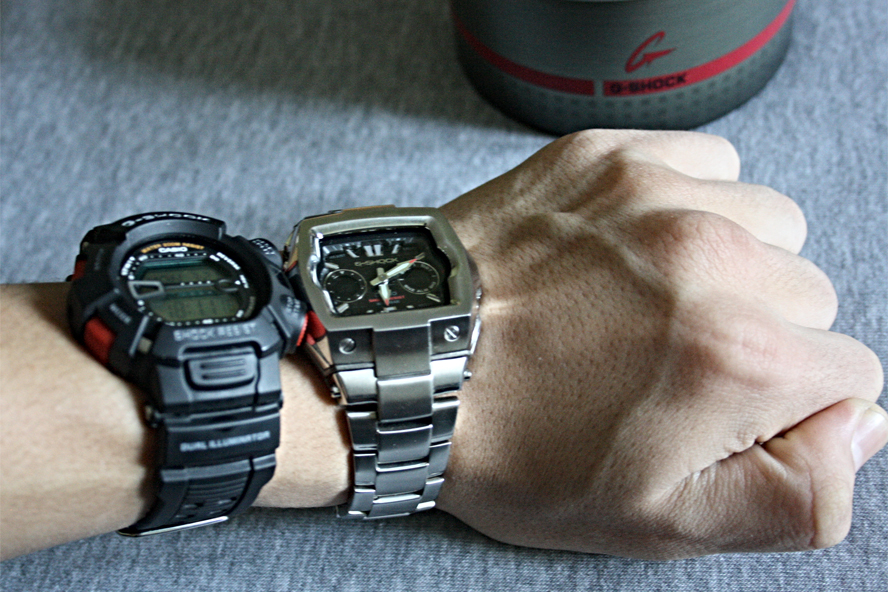 Какое-то время назад старые Casio Edifice EF-304, порядком надоели, и решил я их заменить на те часы, которые хотел купить на протяжении многих лет, но все как-то руки не доходили, по разным причинам. Этими часами, конечно же, были Джи-Шоки. При выборе модели требовался универсальный дизайн, и аналоговые стрелки. Выбор довольно быстро пал на модель G-011D, поскольку стоимость была не очень высока, а сами шоки - металлические и довольно редкие, что совсем круто. Буквально через месяц понял - надо брать еще одни, и немедленно в компанию к "Одиннадцатому" был приобретен Mudman G-9000-1VER. Всем спасибо за внимание.