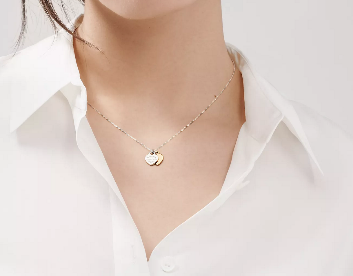 TIFFANY & CO Return to Tiffany Double Heart Tag Pendant - красивая подвеска в виде двух сердец (серебро и Rubedo)