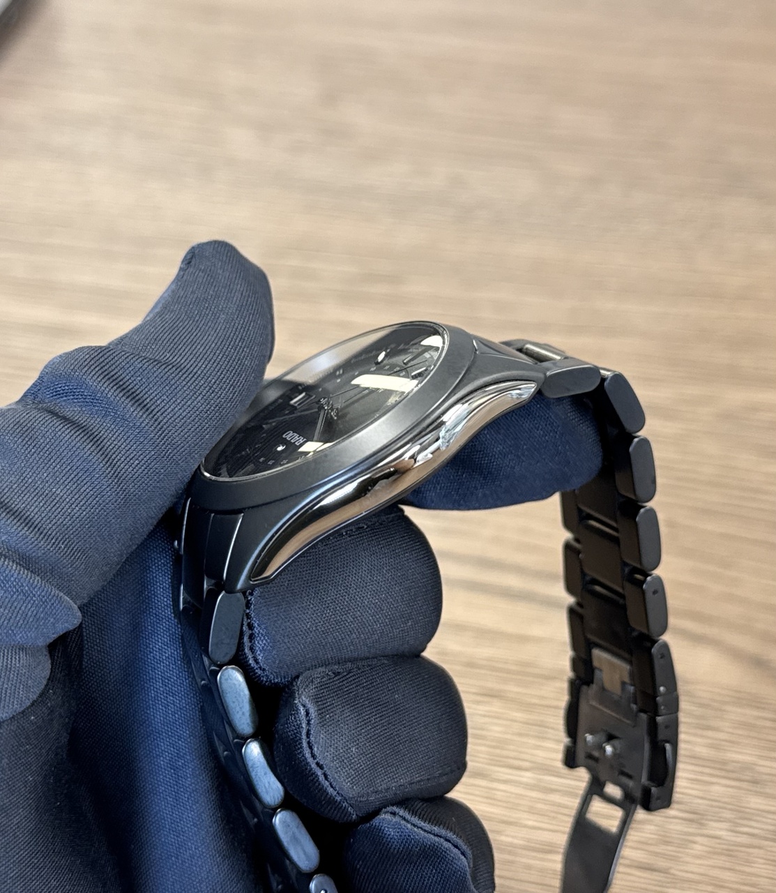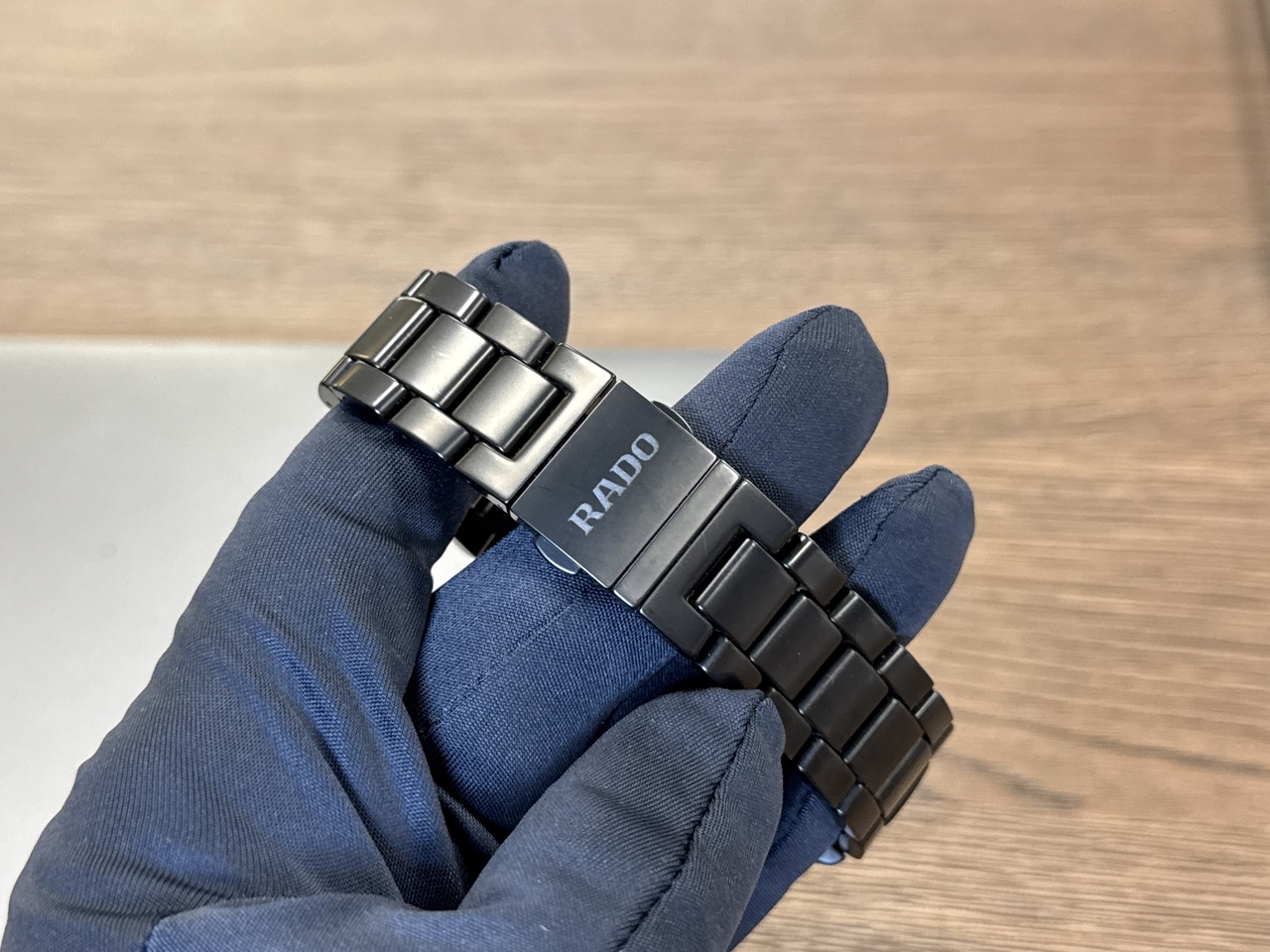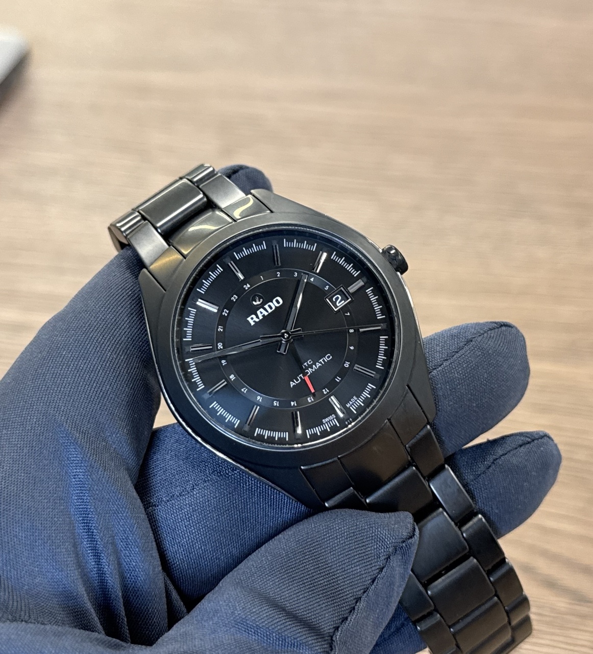 В продаже очень стильный Rado в корпусе из керамики и нержавеющей стали с черным циферблатом, функциями даты и второго часового пояса, на керамическом браслете.