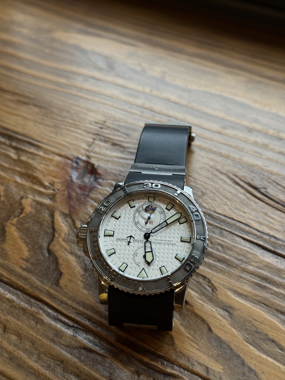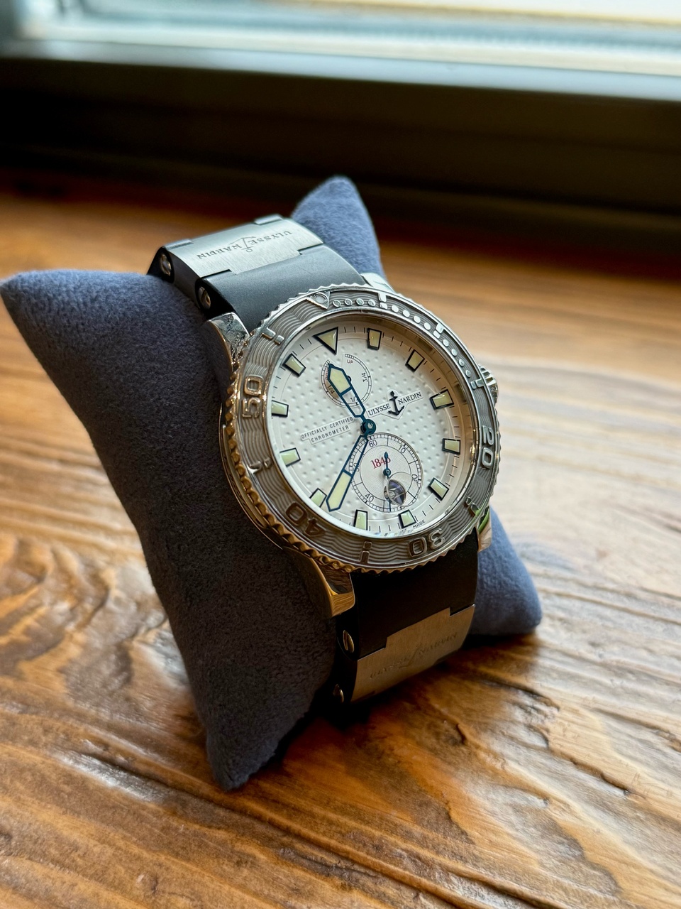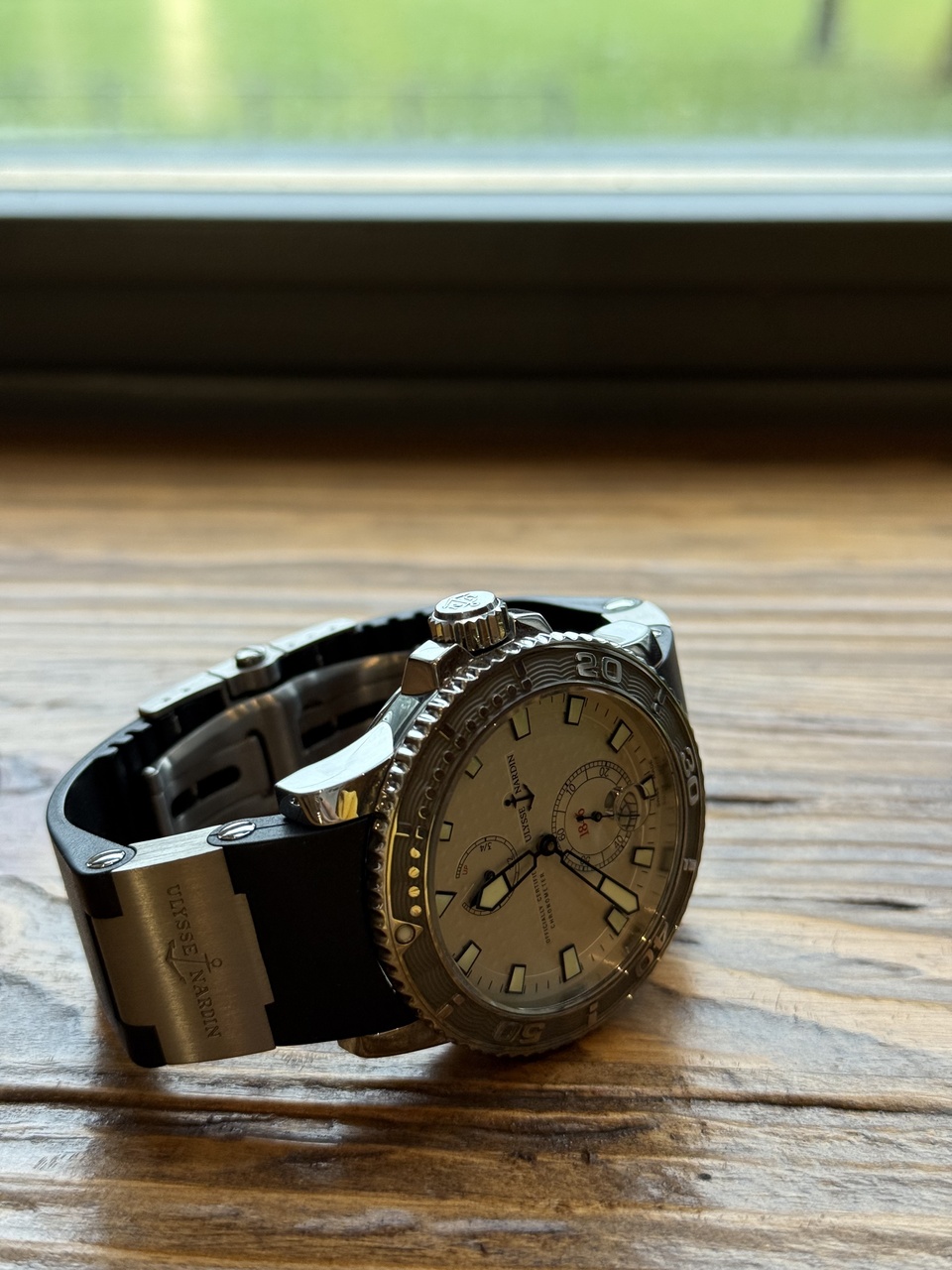 Легендарнейший дайвер от Ulysse Nardin Marine Diver 263-33 (43mm) это базовый вход в вселенную роскоши за скромные на сегодня деньги, узнаваемость невероятная, обеспеченные люди за 10 метров видят, что вы ценитель стиля и высококачественного изделия
