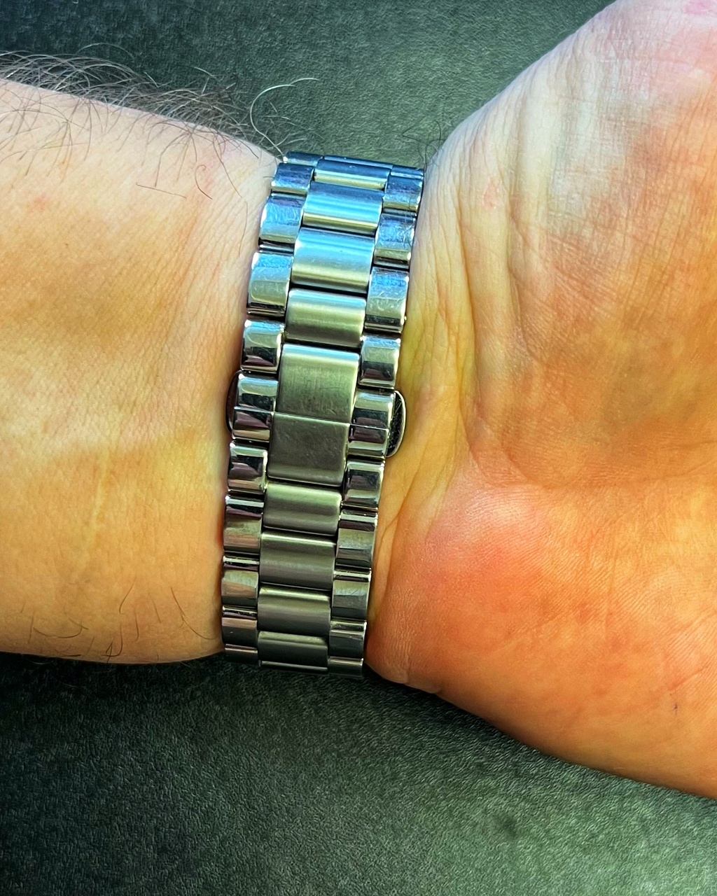 Вместе с часами отдаются ремешки коричневый (оригинальный с оригинальной застежкой) и черный, приобретались тамже. На ремешках присутствуют следы носки, использовались в основном они. Браслет убавлен на одно звено, звено в комплекте.