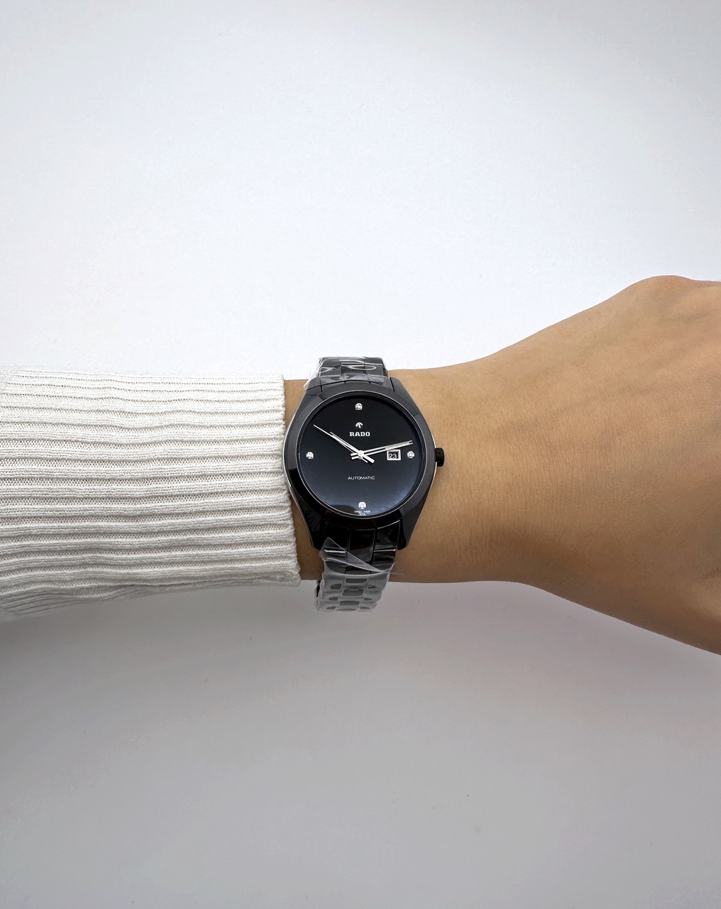В продаже стильная модель от швейцарской компании RADO - это аристократические утонченные швейцарские часы из коллекции HyperChrome, которые имеют выдержанный в черном цвете дизайн всех составляющих элементов и накладных стального цвета боковин на корпусе. Rado Hyperchrome Automatic Diamonds с бриллиантовыми метками на циферблате в размере корпуса 36 мм изготовлены из высокотехнологичной плазменной керамики, а каучуковая заводная головка не даст вашим пальцам соскользнуть при заводе.