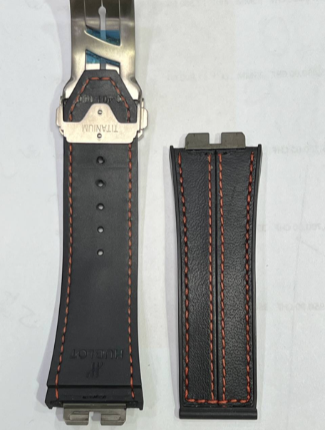 НОВЫЙ РЕМЕНЬ (ЧЕРНАЯ КОЖА С КРАСНОЙ СТРОЧКОЙ) С КЛИПСОЙ НА *HUBLOT* BIG BANG UNICO 45MM (БЫСТРОСЪЕМНЫЙ)