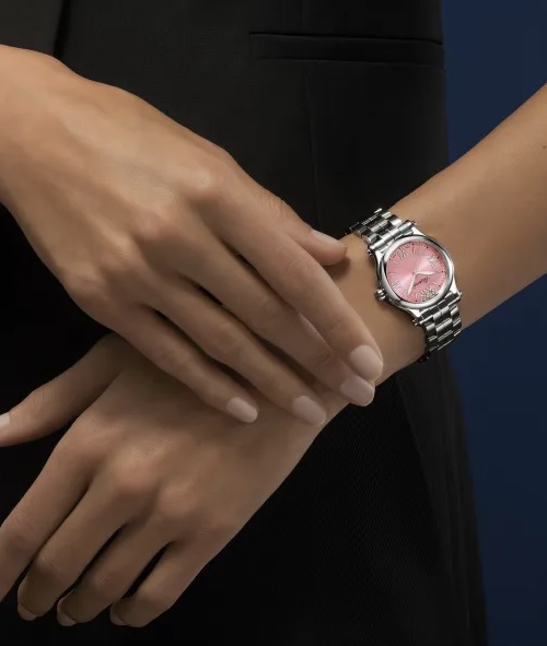 ЦИФЕРБЛАТ: розовый с 3 плавающими бриллиантами ( 0,08 карата )