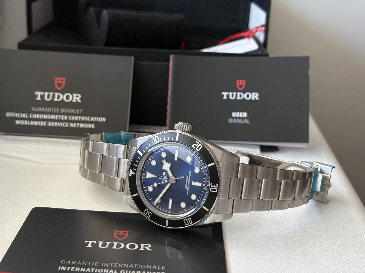 От себя добавлю, что воспринимаются они как более современные часы , нежели все остальные из линейки Black Bay: удивительно как чуть более зубастый безель, отсутствие псевдоклёпок на браслете и глубокие цвета циферблата и безеля освежают и позволяют уже давно известному силуэту выглядеть так свежо и современно.