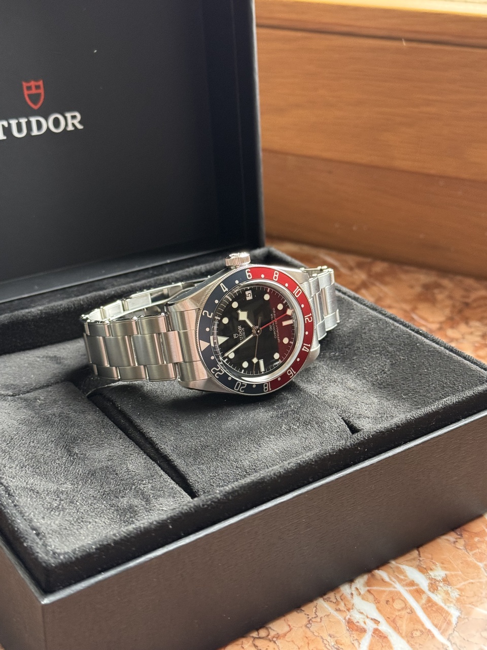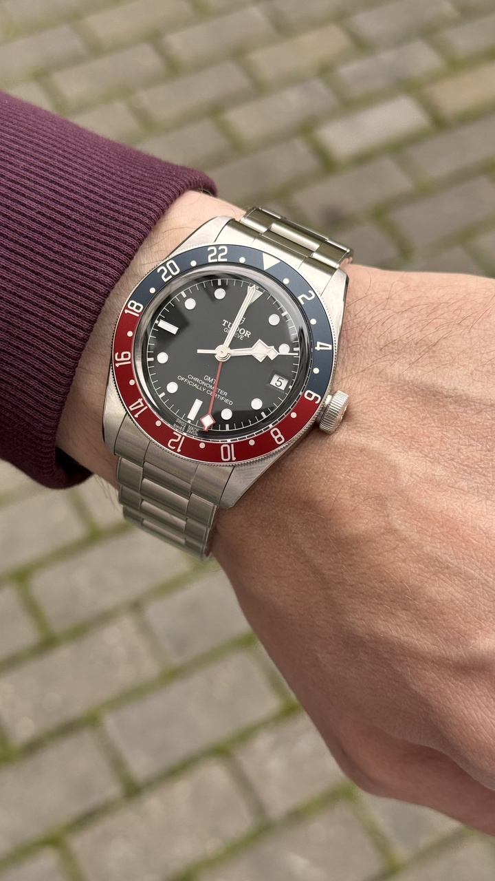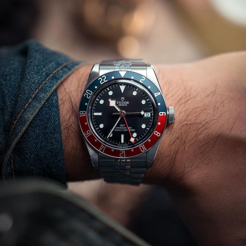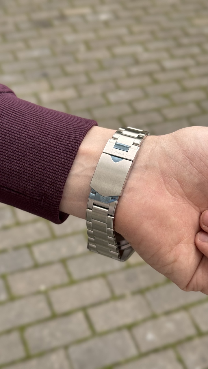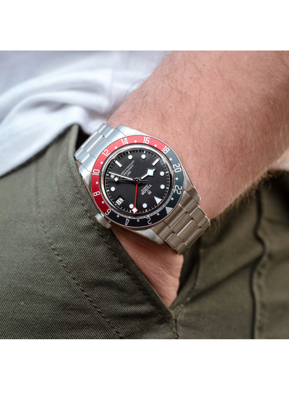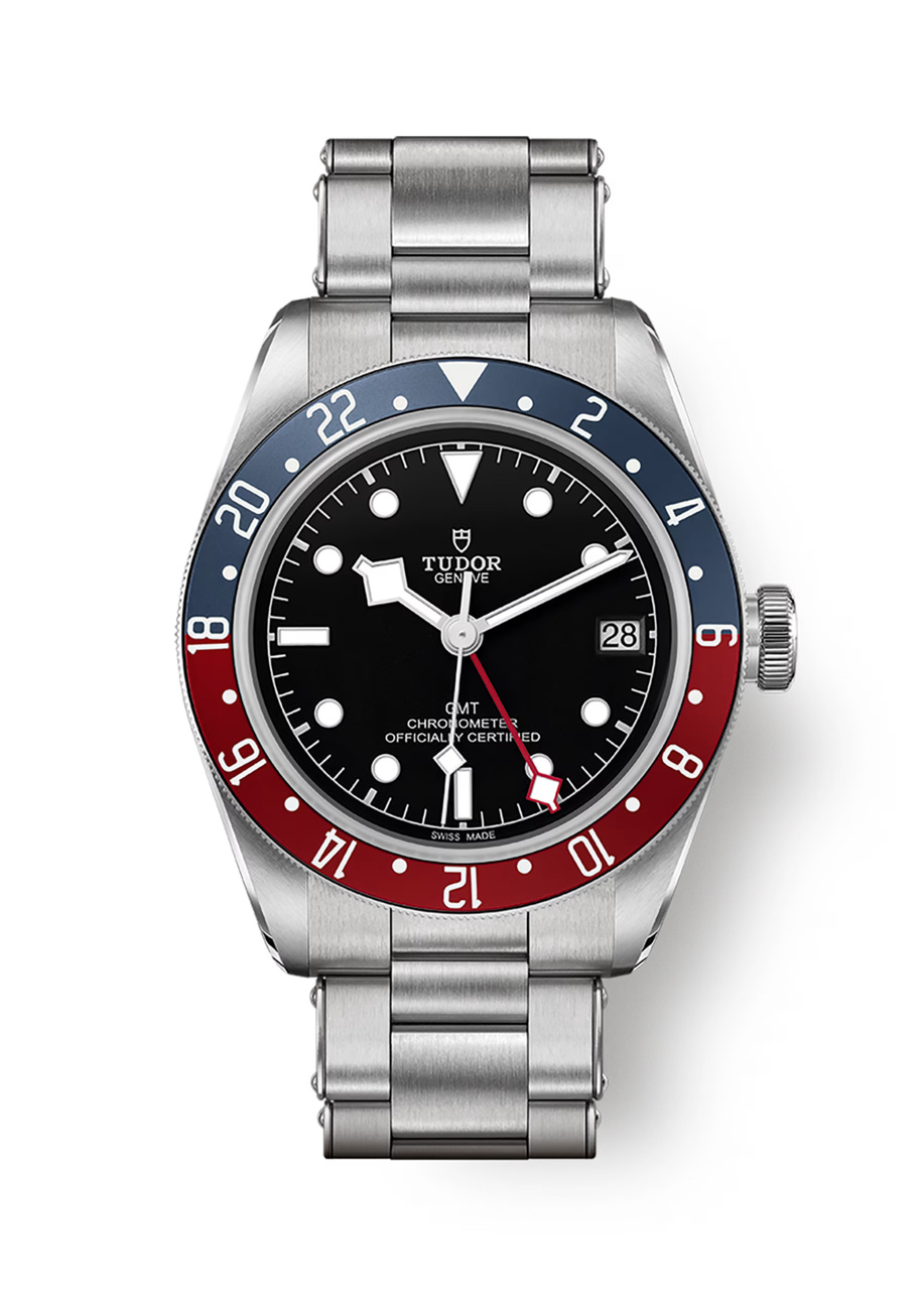 Корпус: 41 мм, сталь, двунаправленный вращающийся безель с красно-синим;