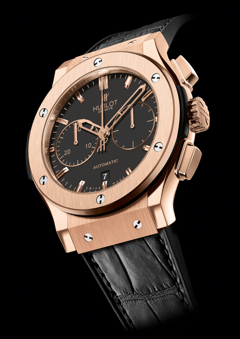 Швейцарская часовая компания Hublot представила свою новую модель Classic Fusion Chronograph, доступную в двух версиях: Ref. 521.OX.1180.RX - в корпусе из 18-каратного золота (точнее сплава, специально разработанного брендом, с добавлением 5% платины, отличающегося особо интенсивным золотым оттенком) и Ref. 521.OX.1170.RX - в титановом корпусе.