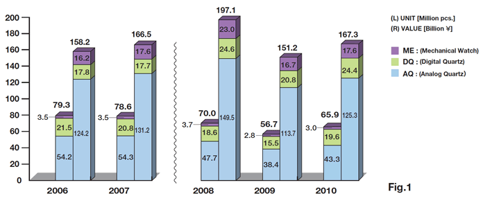 В частности, представлены данные о том, что за 2010 год японские компании выпустили 65,9 млн. наручных часов на сумму 167,3 млрд. йен, что, в сравнении с 2009 годом, составило 16% и 11% роста соответственно.